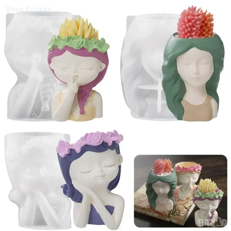 Превърнете дома си в арт галерия или създайте перфектния ръчно изработен подарък! Предлагаме висококачествени силиконови молдове за отливане на кашпи във формата на нежни момичешки лица