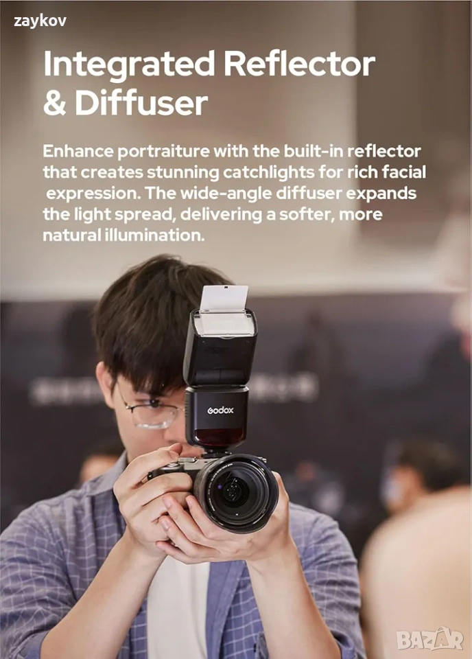 Ярка и бърза: GN33 (ISO 100) мощност с време за презареждане 1,8 секунди и продължителност на светкавицата 1/31000 сек за резки снимки.