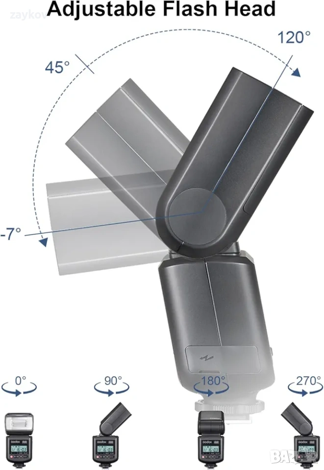 Творческа гъвкавост: въртяща се глава (330° хоризонтално/120° вертикално) + вграден рефлектор/дифузер за отразено осветление.