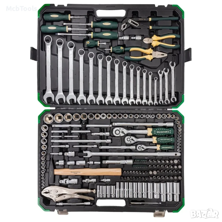 Пълен професионален комплект инструменти RockForce 180+2 части, изработен от висококачествена хром-ванадиева стомана за максимална здравина, износоустойчивост и дълъг експлоатационен живот. Идеален за автомеханика, сервизни специалисти и домашни майстори, този комплект включва богат избор от гнезда, битове, тресчотки, удължители и ръчни инструменти, събрани в здрав и удобен куфар за лесна организация и пренасяне.