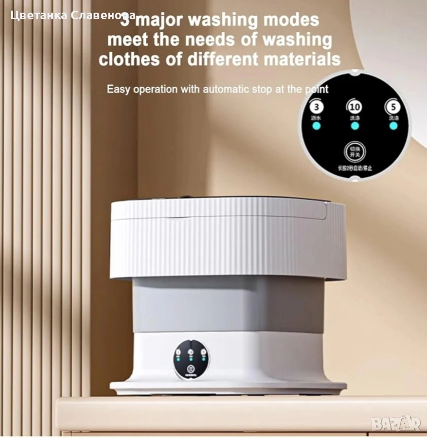 Преносима пералня, 12 л голям капацитет и 60 W, сгъваема мини пералня и сушилня, компактна сгъваема малка пералня, чорапи, бебешки дрехи, бельо, кърпи, за общежитие, къмпинг, апартамент, пътуване