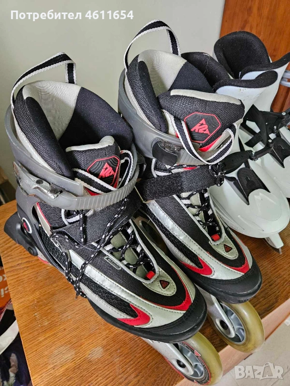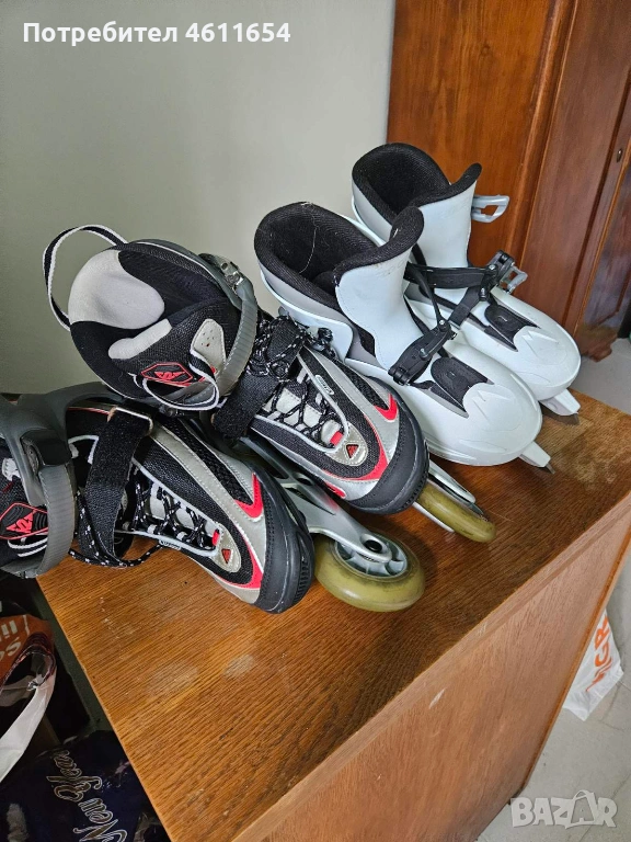 Състояние: Използвани, с нормални следи от употреба (драскотини по шината), напълно функционални. Лагерите и колелата са в добро състояние.