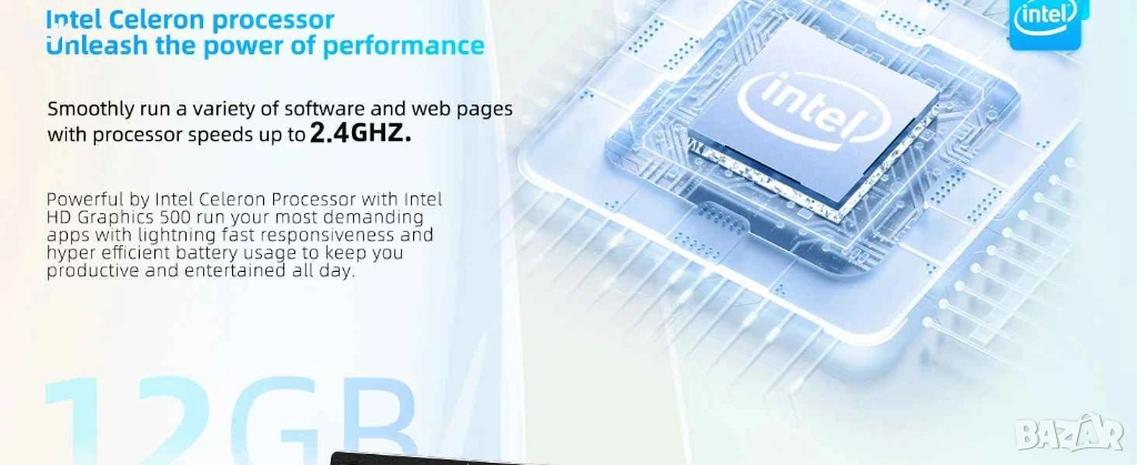 Процесор: Intel Celeron N3350 с честота до 2.4GHz.