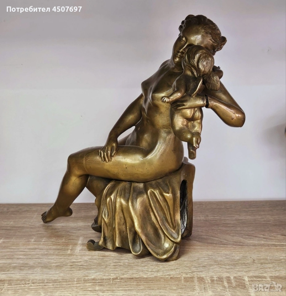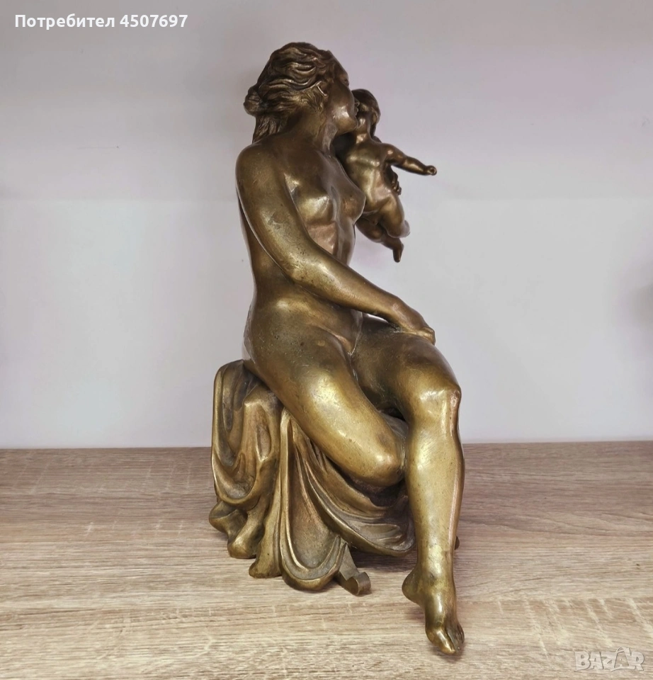 Прекрасен бронз на седнала Венера и Купидон в нейните прегръдки. Височина 30см. Около 7 килограма
