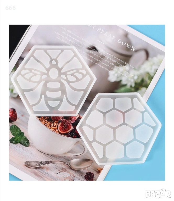 2 бр. силиконова тава за леене с пчелна пита, смола, епоксидна форма