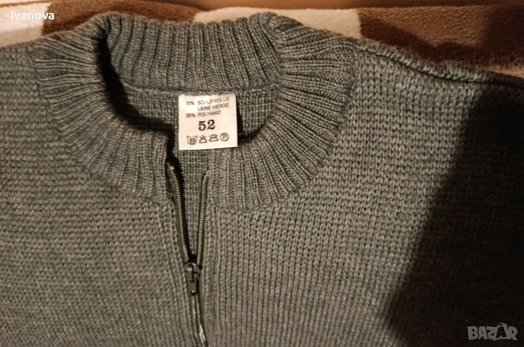 Продавам нов върнен сив пуловер с цип. Размери: ширина 56 см., дължина 74