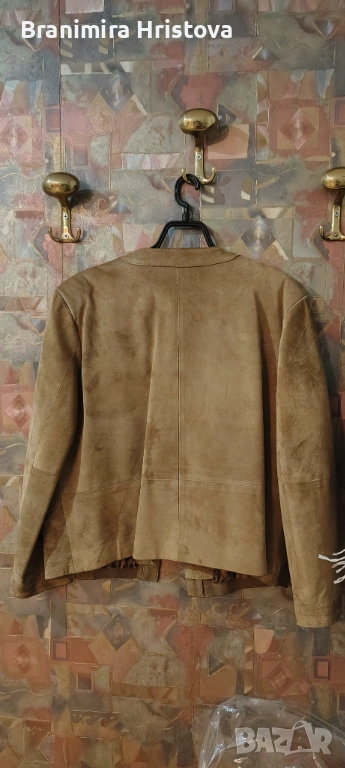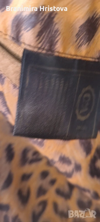 Продавам дамско яке C&A от естествен свински велур в цвят бежово/камел, с ефектна леопардова подплата. Къс модел, много стилно и удобно – стои добре и се комбинира лесно. Закопчава се отпред с копчета и има декоративни джобове/детайли.