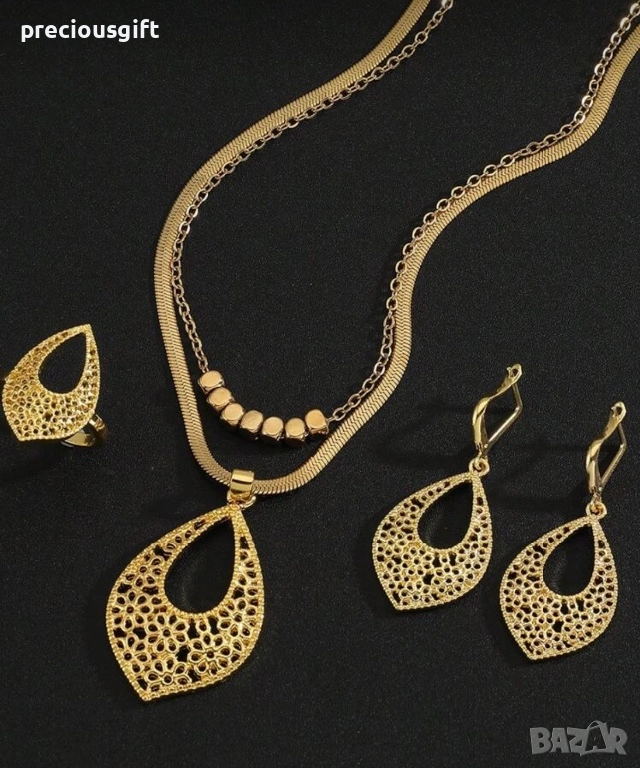 Комплект бижута от неръждаема стомана - гердан, обеци и пръстен, снимка 1 - Бижутерийни комплекти - 53101553 Комплект бижута от неръждаема стомана - гердан, обеци и пръстен, снимка 2 - Бижутерийни комплекти - 53101553 Комплект бижута от неръждаема стомана - гердан, обеци и пръстен, снимка 3 - Бижутерийни комплекти - 53101553 1/3