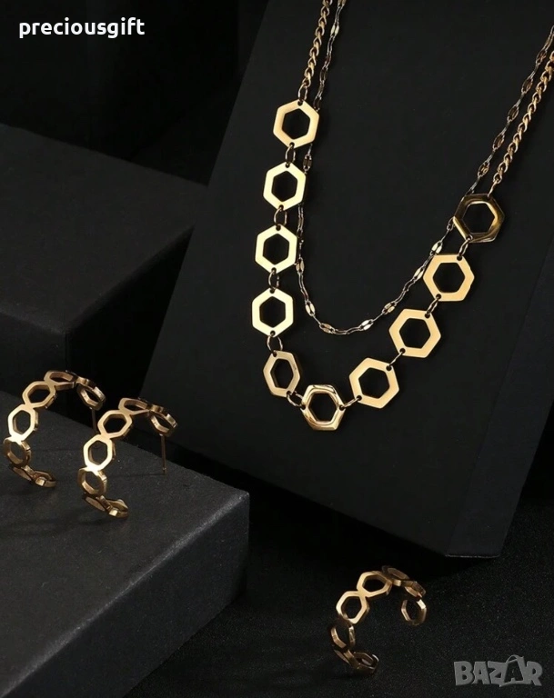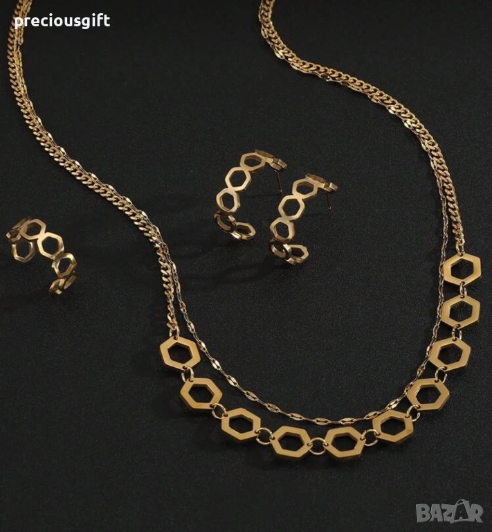 Комплект бижута от неръждаема стомана - колие, обеци и пръстен, снимка 1 - Бижутерийни комплекти - 53101566 Комплект бижута от неръждаема стомана - колие, обеци и пръстен, снимка 2 - Бижутерийни комплекти - 53101566 Комплект бижута от неръждаема стомана - колие, обеци и пръстен, снимка 3 - Бижутерийни комплекти - 53101566 1/3