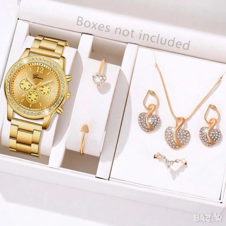 Комплект бижута с часовник - колие, гривна, пръстен и обеци, снимка 1 - Дамски - 53101620 Комплект бижута с часовник - колие, гривна, пръстен и обеци, снимка 2 - Дамски - 53101620 Комплект бижута с часовник - колие, гривна, пръстен и обеци, снимка 3 - Дамски - 53101620 Комплект бижута с часовник - колие, гривна, пръстен и обеци, снимка 4 - Дамски - 53101620 1/4