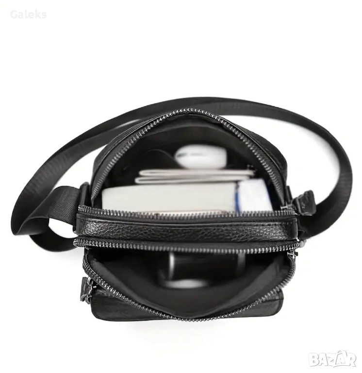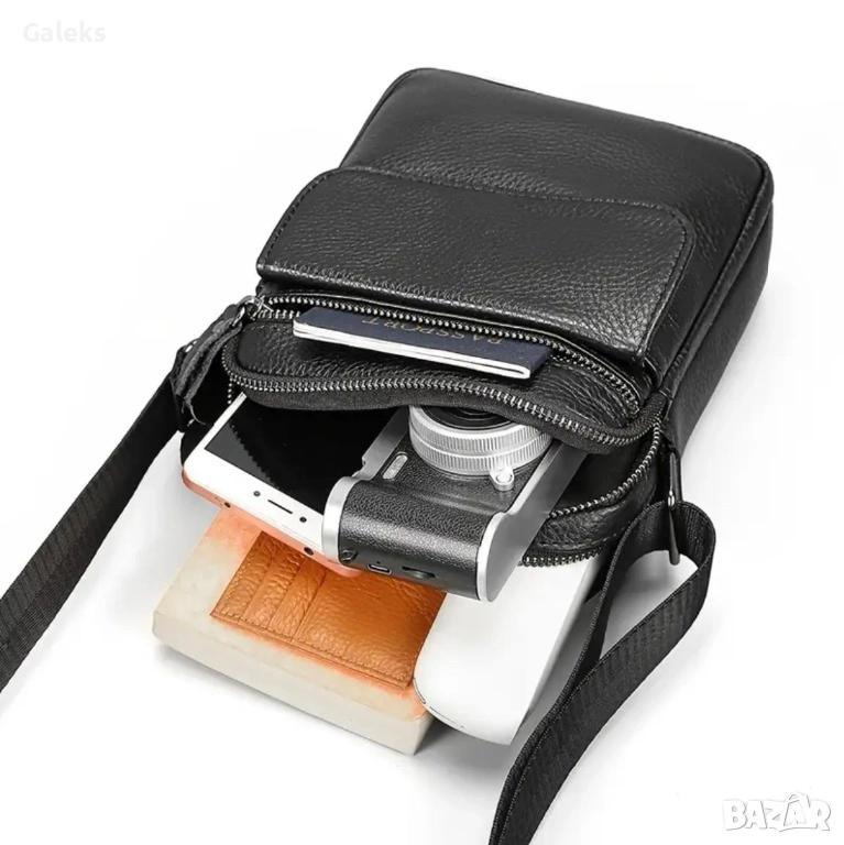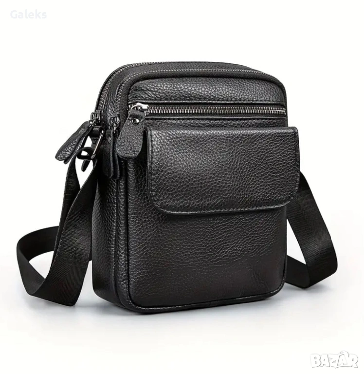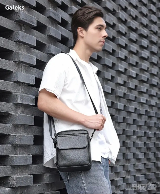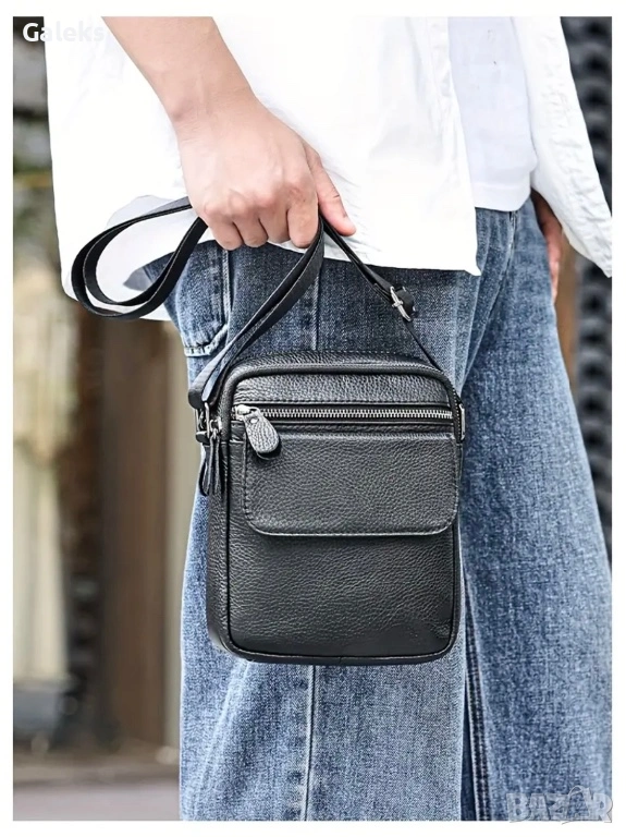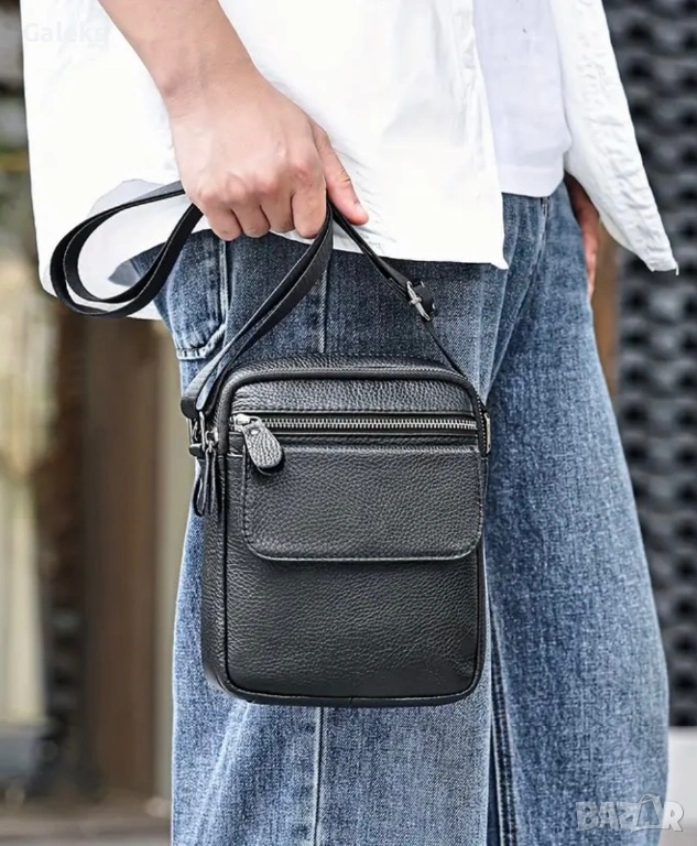 Мъжка кожена чантичка за през рамо с малък размер, красива визия и висока функционалност!