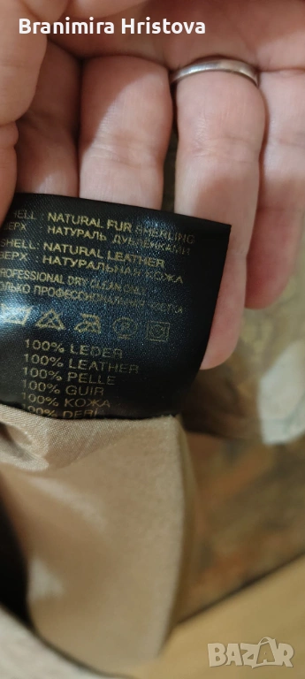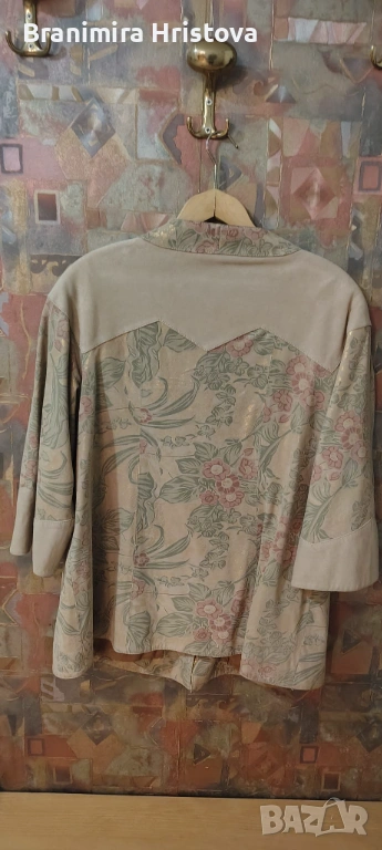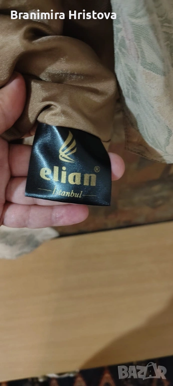 Продавам дамско яке/късо палтенце марка Elian (Istanbul), размер L. По етикет: 100% естествена кожа . Моделът е в светъл бежов нюанс с нежен флорален десен и 3/4 ръкав, закопчаване с копчета. Стои много елегантно – подходящо за пролет/есен.