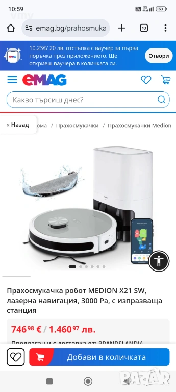Прахосмукачка робот MEDION X21 SW, лазерна навигация, 3000 Pa, с изпразваща станция, снимка 1 - Прахосмукачки - 53101746 Прахосмукачка робот MEDION X21 SW, лазерна навигация, 3000 Pa, с изпразваща станция, снимка 2 - Прахосмукачки - 53101746 Прахосмукачка робот MEDION X21 SW, лазерна навигация, 3000 Pa, с изпразваща станция, снимка 3 - Прахосмукачки - 53101746 Прахосмукачка робот MEDION X21 SW, лазерна навигация, 3000 Pa, с изпразваща станция, снимка 4 - Прахосмукачки - 53101746 1/4