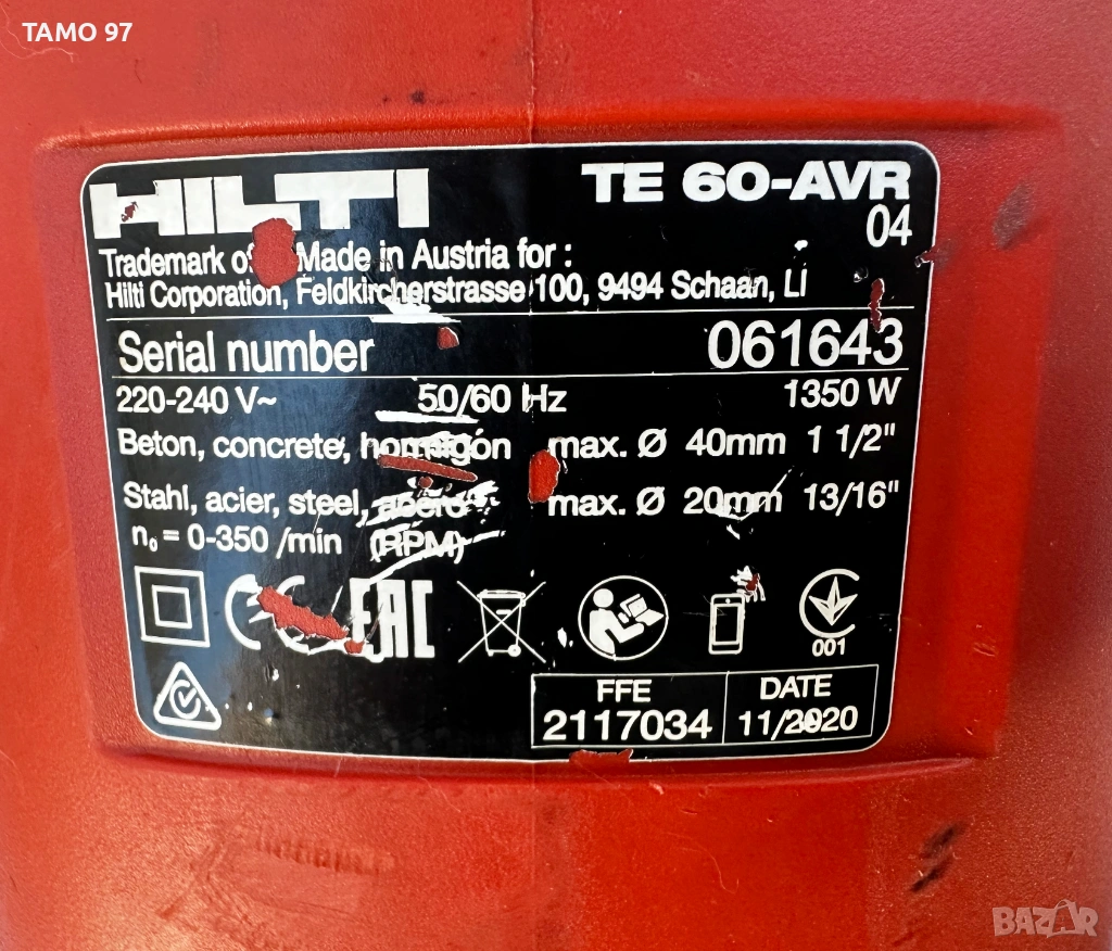 Hilti TE 60-AVR - Комбиниран къртач 1350W 8.0J перфектен!