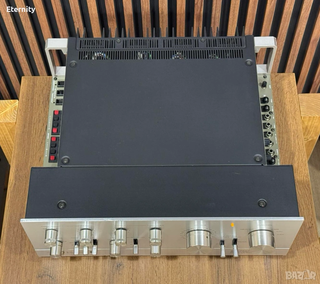 Разделяне на предварителния усилвател: Секциите на предварителния усилвател и усилвателя на мощност могат да бъдат разделени чрез джъмпери на задния панел, което позволява използването му като самостоятелен