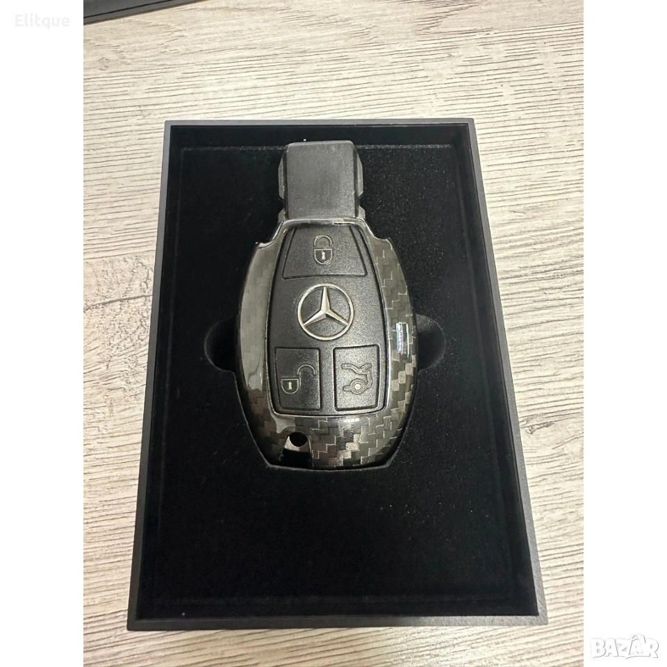 Кейсът е купуван от физически магазин в Япония. Продукта е ръчна изработка и е от истински карбон. Изключително красив е - няма никакъв аналог на пазара на кейсове. Придава уникалност. Пасва само на вида ключове, като ключа от снимката (плоската задна част). Купен е за 14135 японски йени, което се равнява на около 185лв. Разполагам с една единствена бройка. Никога не е ползван - ключа поставих само за снимките. Кутията в която се намира е оригиналната и е идеална за подаръчна.