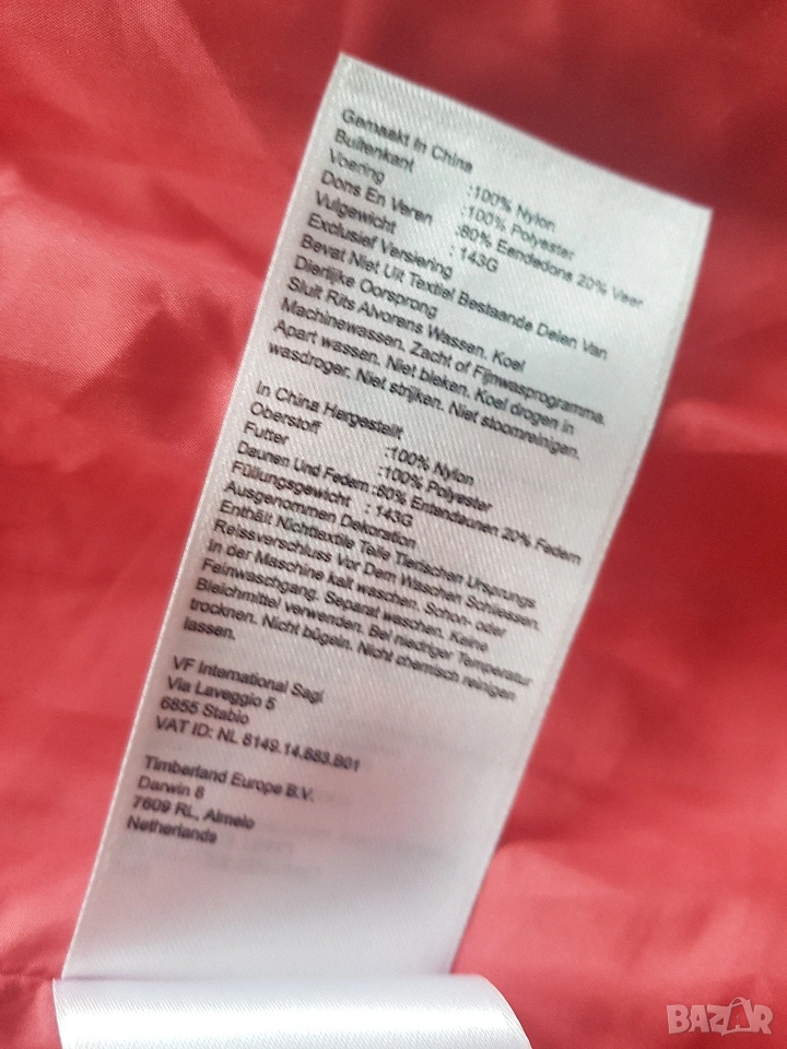 Timberland down jacket Като ново. Размери широчина рамене 41 см широчина бюст 50 см. дължина на ръкава от рамото 64 см. дължина на якето 62 см. Състав 80% пух 20% пера.