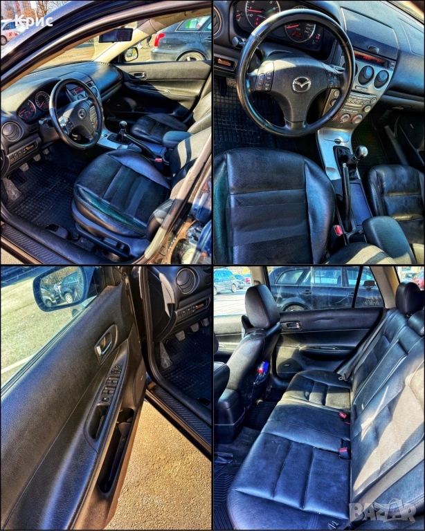 Продавам личният си автомобил Мазда 6. Автомобилът е в добро техническо състояние, с нормални следи от употреба за годините си. Редовно и безкомпромисно обслужван. Летни гуми на 2 сезона dot 24, Uniroyal rain sport 17 цола с черни алуминиеви джанти. Чисто нов акумулатор Banner с две години гаранция. Нови дискове и накладки и рециклирани спирачни апарати. Нов катализатор. Нов изпарител и нова газова бутилка (на мястото на резервната гума). По ходовата част са сменяни амортисьори, носачи, накрайници, тампон на двигателя, както и всички тампони на задният мост. K&N спортен филтър. Автоматични дневни светлини. Ксенонови фарове на къси и лед фарове на дълги светлини. Защитно тонирано фолио LLumar на фарове и стопове, фолио с UV защита на предните стъкла, както и затъмнени задни стъкла. Кожен салон с подгрев на предните седалки, фабрична аудио система Bose, Bluetooth, USB, AUX дигитален чейнджър. Мултимедийно тъчскрийн огледало за задно виждане с 12 инчов дисплей с видеорегистратор, камера за заден ход, с безжично свързване с android auto и car play - Waze. Климатроник с перфектно работещ климатик.