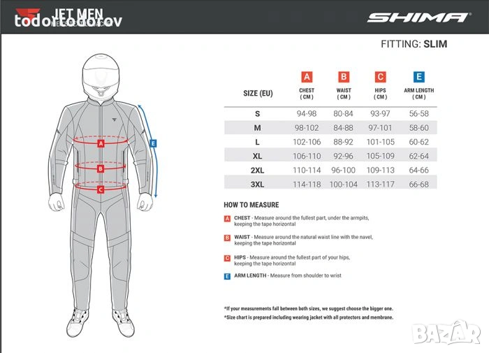 JET е лятно яке, проектирано с удължени мрежести панели за отлично охлаждане! Идеално е както за градските мотоциклетисти, така и за тези, които обичат кратки мотоциклетни обиколки. Благодарение на големите си вентилационни панели, то осигурява високо ниво на въздушен поток, гарантиращ максимална вентилация дори в най-горещите дни. Този модел е оборудван с подвижна ветро- и водоустойчива мембрана NextDry™ за вътрешна или външна употреба. В случай на дъжд или студен вятър, мембраната NextDry™ може да се постави и отгоре. С сертифицирана CE Level 2 защитна система, то осигурява повишена безопасност, допълнително подсилена от устойчива на износване материя, която укрепва лактите и ръцете. Можете да съчетаете това яке перфектно с дънки SHIMA или специално проектирани силно вентилирани панталони JET от същата серия. Благодарение на два различни свързващи ципа, якето може лесно да се прикрепи към избраните от вас панталони. Дискретно поставените светлоотразителни панели гарантират, че ще бъдете забелязани дори в дни с намалена видимост.