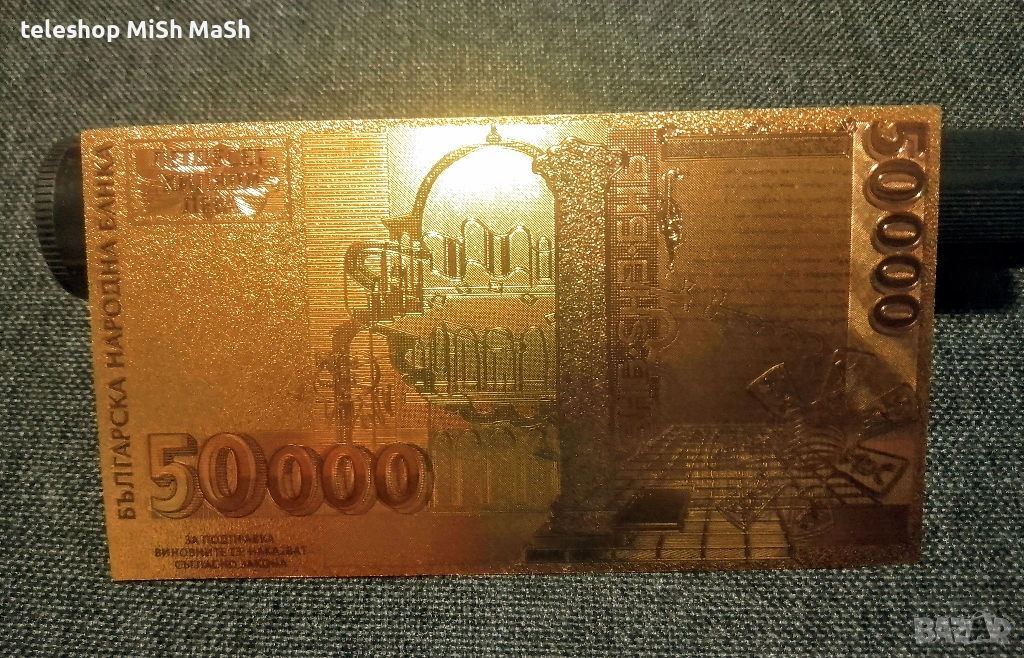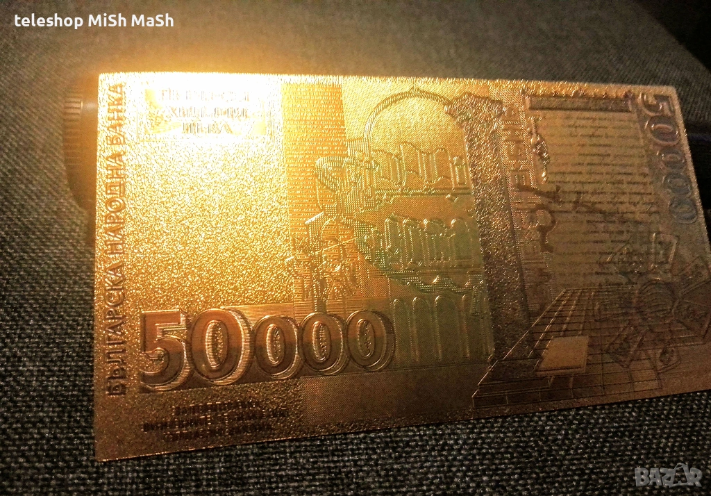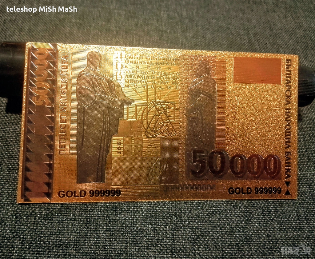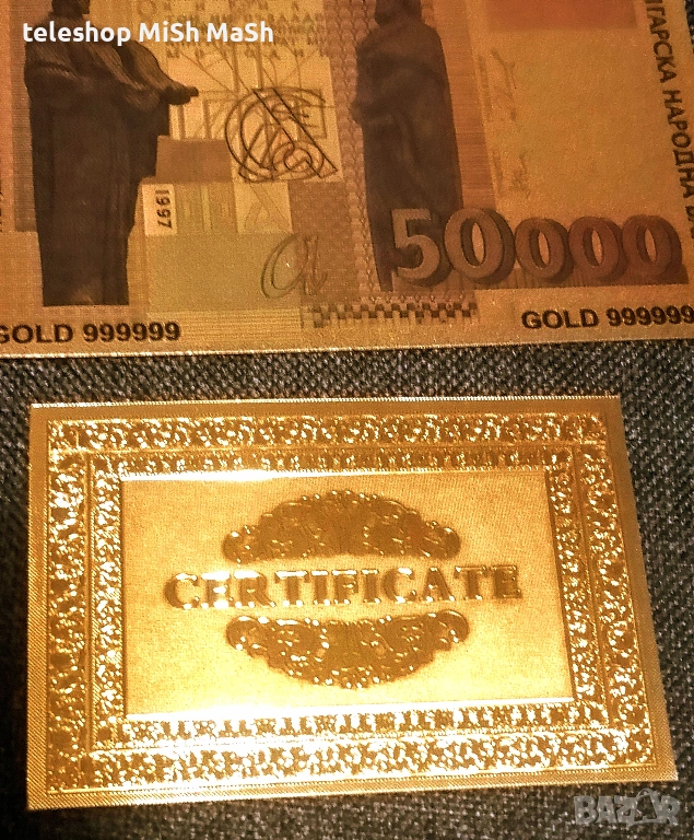 позлатена 50 хиляди лева банкнота с релеф + сертификат → Обява 53102388