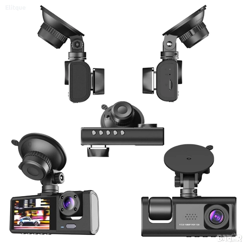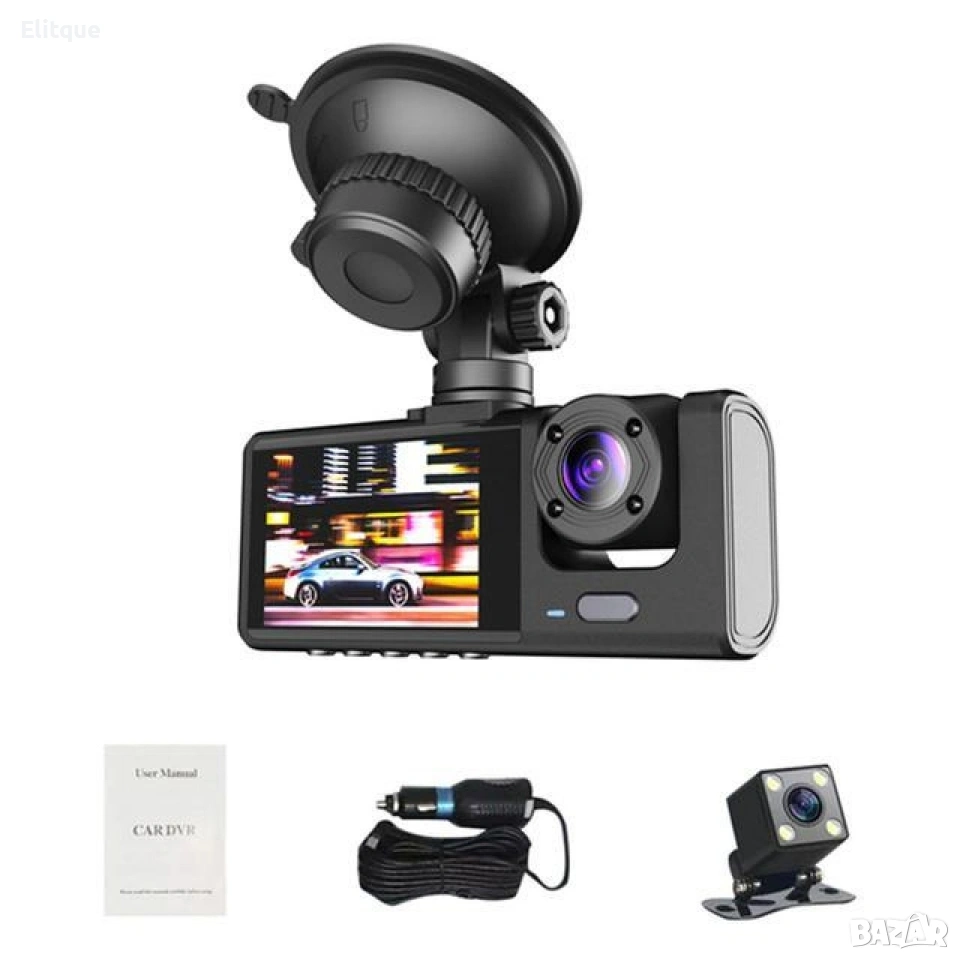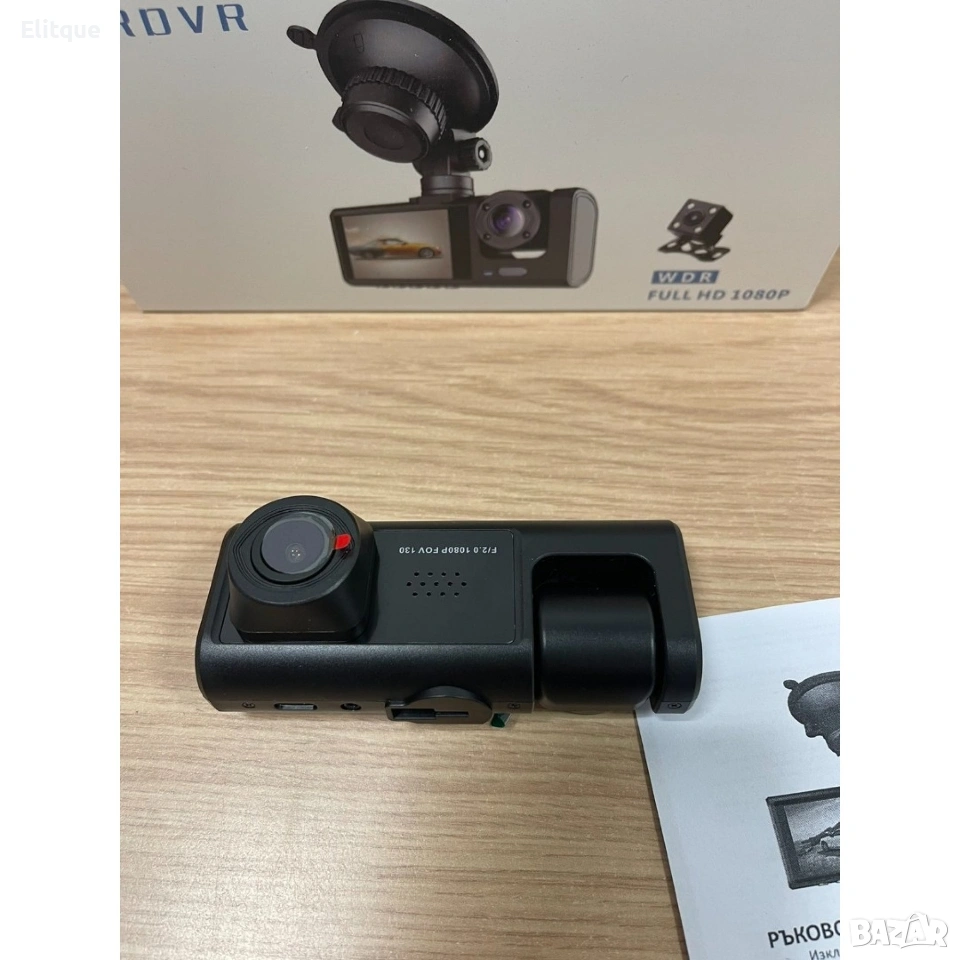 Видеорегистраторът предлага изключителен набор от възможности и функции на потребителя. Той е изключително полезен при натоварен трафик за проследяване на пътната обстановка. С помощта на 3 – каналната камера може да записвате навсякъде около вашия автомобил и вътре в колата ви. Характеристики: Камера: 5mpx HD; Процесор: Ambarella (70CPU); G-сензор: поддържа; Екран: 2.0LTPS; Език: поддържа много езици; Формат на файловете: NOV; Видео формат: H.264; Аудио формат: AAC; Вградене памет: до 64GB; Микрофон; Формат на изображението: JPG; Обективът да се върти: ръчна настройка; Батерия: 300mAh литиева батерия; Цикълен запис: поддържа; не изпускайте секунди; Звуков запис: поддържа; Функция за нощно виждане: поддържа; Мониторинг за паркиране: поддържа; Работна температура и температура на съхранение: -40 градуса до +70; Работна влажност: 15-65 процента относителна влажност; Комплектът включва: Видеорегистратор; Зарядно за кола; Стойка (поставка) за видеорегистратор; Камера за задно виждане; Ръководство на потребителя.