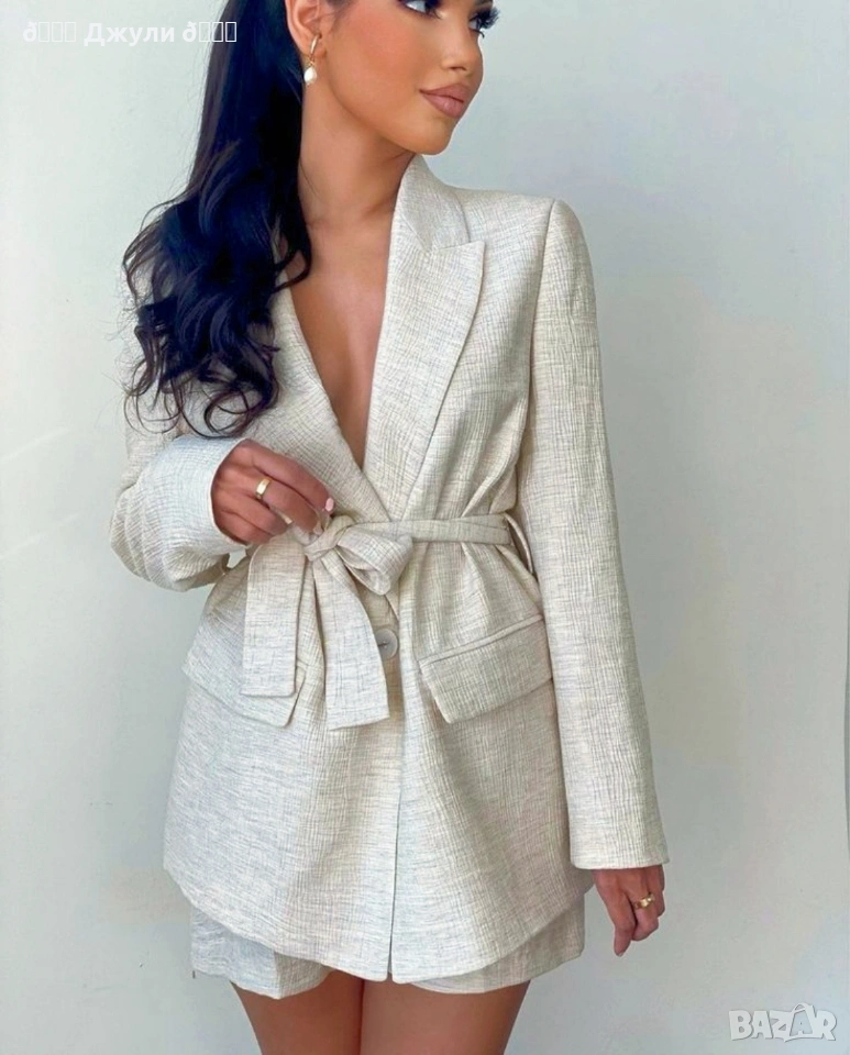 Сакото стои прекрасно с панталони, поли и къси панталонки/ както е показано на снимките