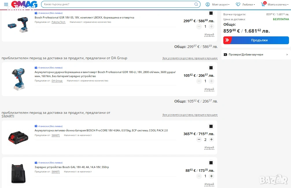 Магазинската цена на комплекта без винтовертта е: 558евро