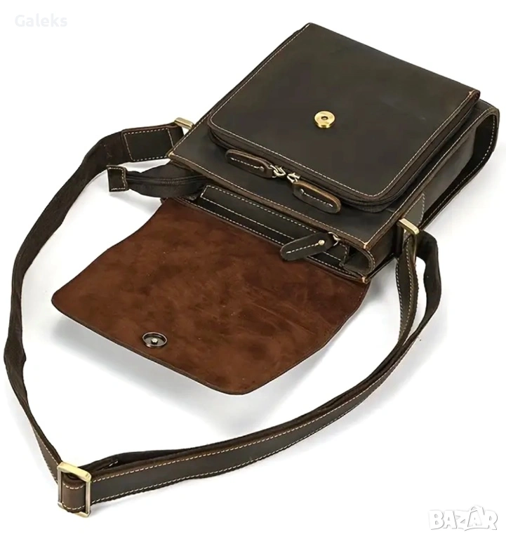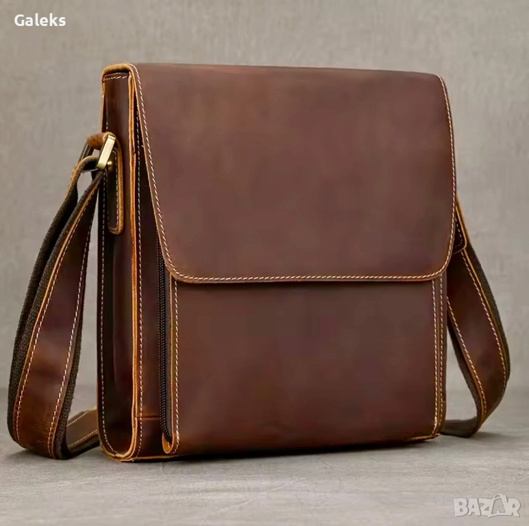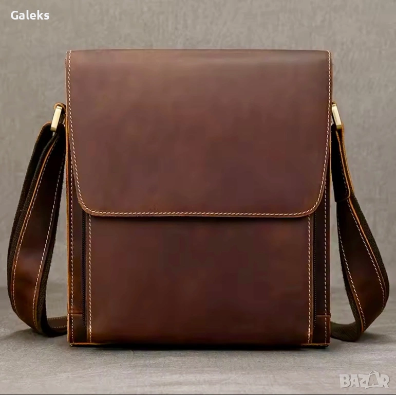 Мъжка луксозна кожена, винтидж чанта /Кафява Crazy Horse* естествена кожа!