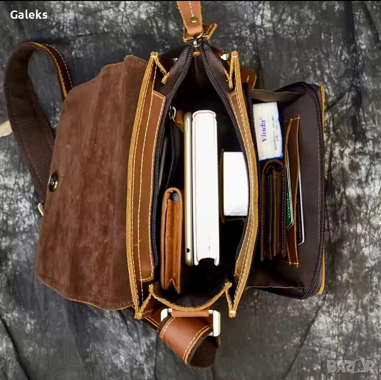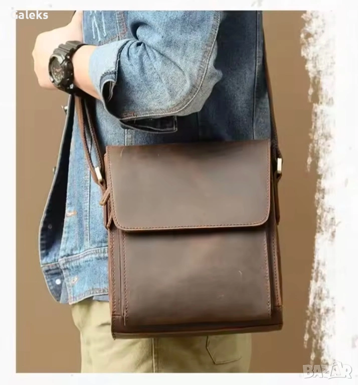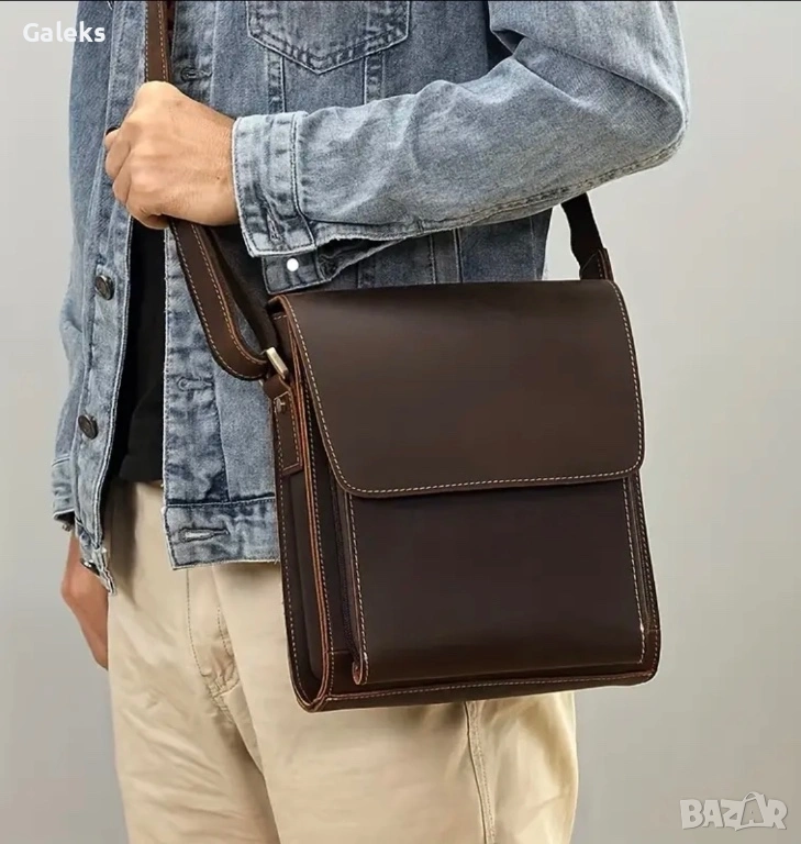 Мъжка изискана Винтидж чанта от върхова естествена кожа!