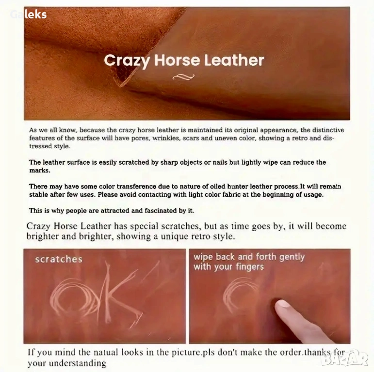 Направена от най-висок клас кафява естествена телешка кожа (дебела - Crazy Horse 5*).