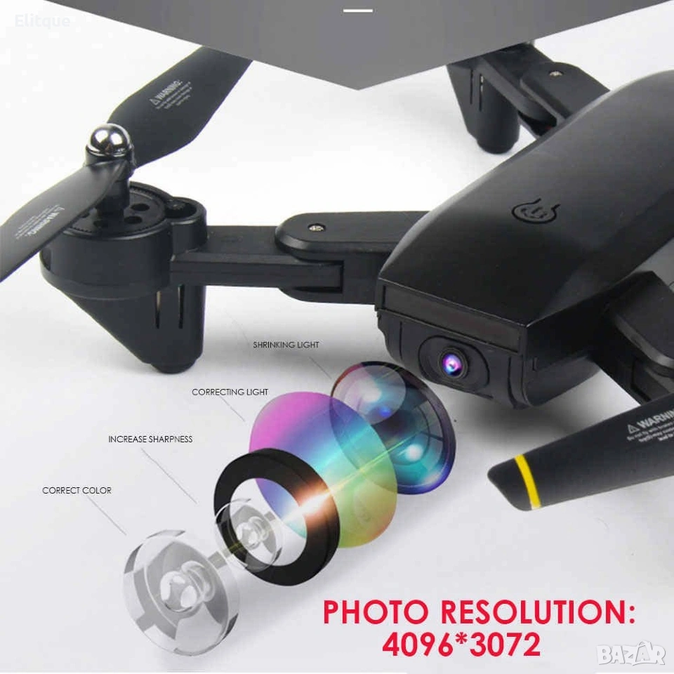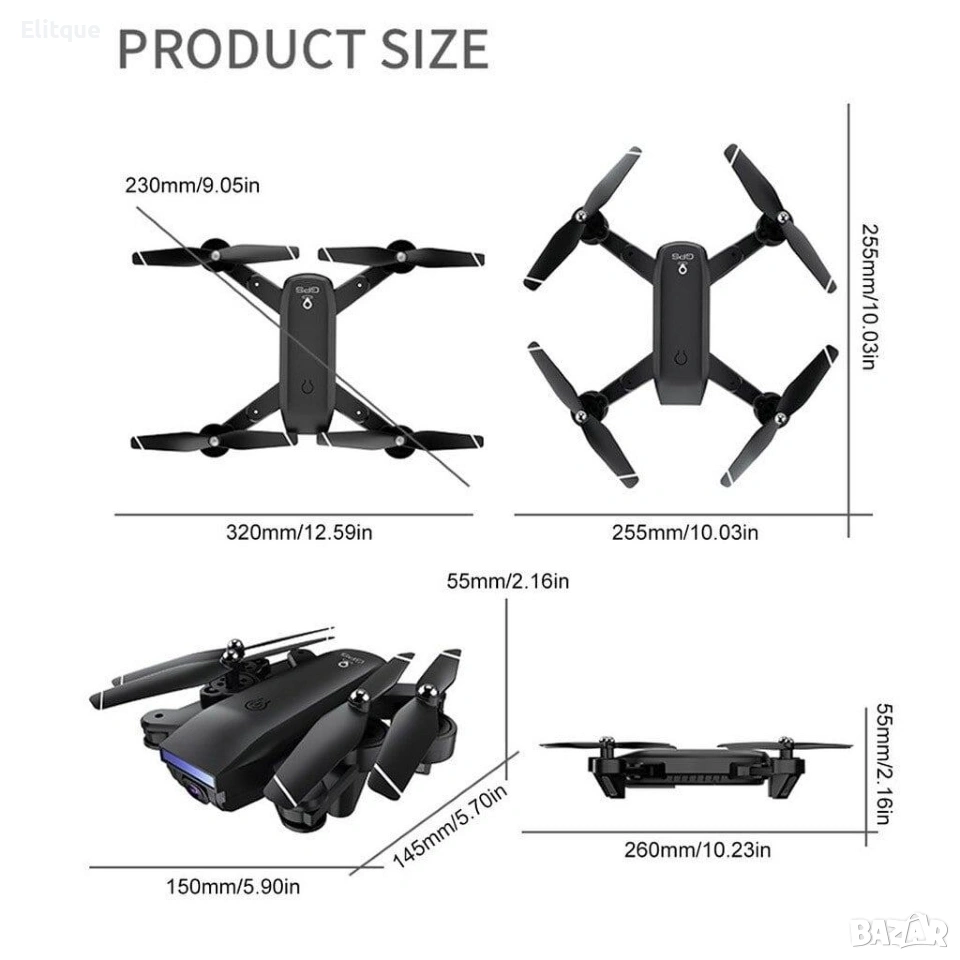 Сгъваем дрон, с който може да се насладите на всяка красива гледка от птичи поглед. Той се свързва със смартфона, като наблюдавате и снимате в реално време. С дрона ще може да правите въздушна акробатика. Също така разполага и с функция за връщане с едно докосване, ако отиде толкова далеч, че се изгуби от погледа Ви. Дронът е 6-осен жироскоп, който прави полета стабилен и дрона лесен за управление, a обхвата от контролера до дрона приблизително 100 метра. Технически характеристки: Камера с регулиращ се наклон 4К снимки и FHD 1080p видео в реално време 15-20 мин. полетно време Батерия 3.7V 1000mAh с USB конектор за зареждане Време за зареждане около 1.5 часа Обхват с дистанционното управление - 100 метра 2.4GHz Съдържание на комплекта: 1 бр. Дрон 1 бр. Дистанционно управление 1 бр. Полетна батерия 3.7V 1000mAh 4 бр. Протектори за перките 4 бр. Допълнителни перки 1 бр. USB кабел за зареждане Резервни винтчета и зъбни колелца за перките 1 бр .Отвертка