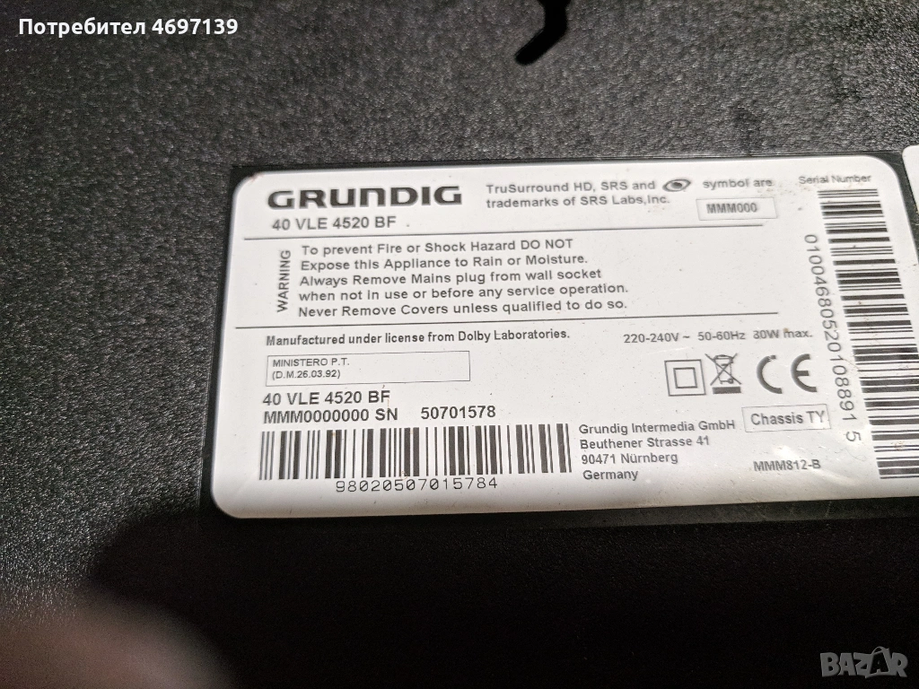 GRUNDIG VLE 4520 BF--VTY190R-6 V.0-DPS-101EP A → Обява 53102748
