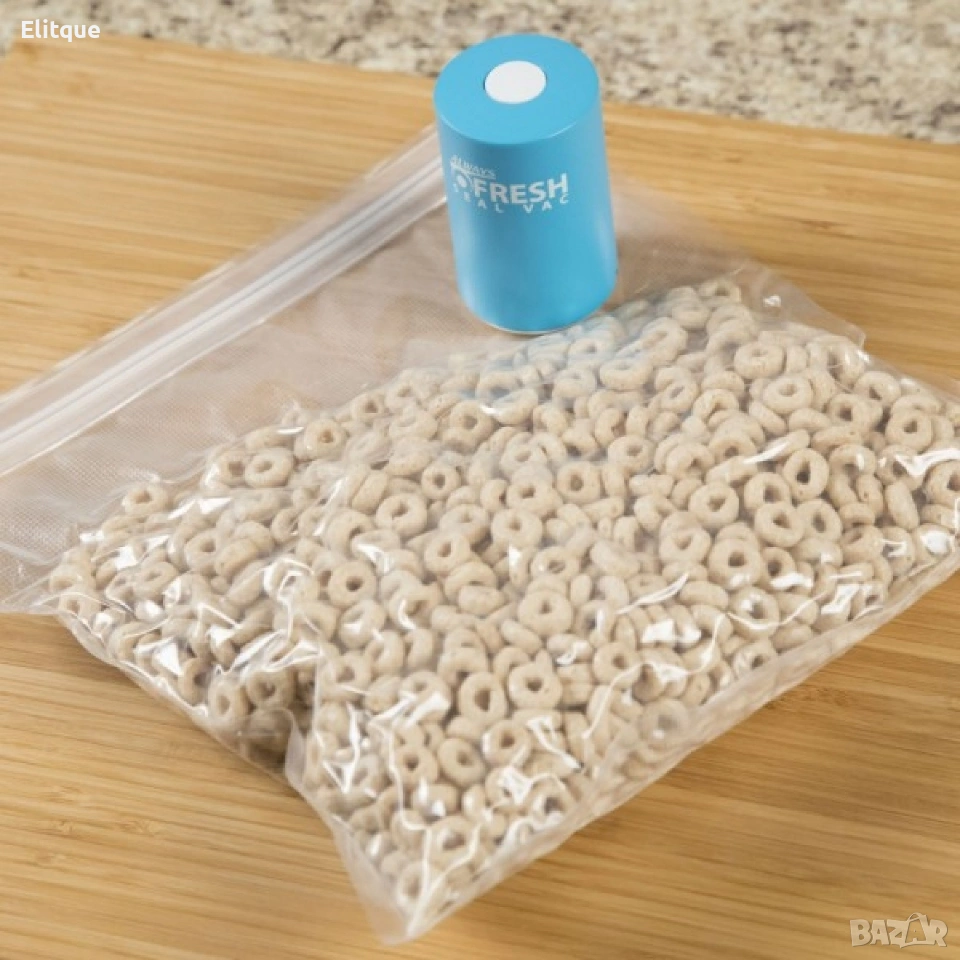 Запазването на вкусовите качества на храната, която всекидневно консумираме е едно от предизвикателствата, пред които всеки от нас се е изправял. Кутии, пликове, фолио и какво ли още не... Едно от основните предимства на машинката за вакуумиране e че е изключително компактна. С размери от едва 5х9х5 см., тя се побира идеално във всяко чекмедже в кухнята ти. Освен това, е толкова лека, че можеш да я пренасяш на практика навсякъде с теб. Така например, храната останала след съботния пикник, няма да отива на боклука, а ще си остане свежа. Всичко, което трябва да направиш е: Да вземеш един от вакумните пликове включени в комплекта; Да поставиш в плика храната, която искаш да запазиш свежа; Да доближиш машинката до специалния отвор обозначен със синьо; Да натиснеш бутона и да изчакаш няколко секунди, докато въздухът в плика изчезне напълно; И готово! Машинката за вакуумиране на храна е снабдена с вграден USB порт, чрез който можеш лесно и бързо да я зареждаш винаги, когато зарядът ? се изчерпа. Характеристики: Материал: ABS Вакуумно опаковани и херметически затворени Увеличава времето за съхранение на храната Подходящ за хладилник или фризер Захранване: чрез USB кабела включен в комплекта 5бр. пликове за многократна употреба с размери: 22х20см.