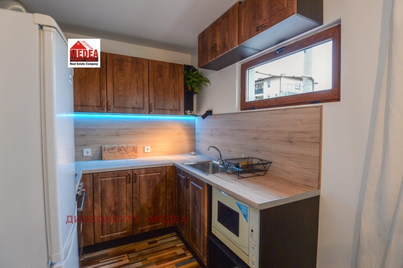 Distribution: entrance hall, laundry, spacious living room, separate dining room with kitchenette, bedroom, bathroom with wc, COVERED PORCH. Heating: electricity, with air conditioners. Very low bills for utilities, as the house has INNER and OUTER INSOLATION. Sеcurity system - fee BGN 37 per month. In the area there are green areas, hypermarkets, sports facilities etc. The property is managed by Residential Property Management!
