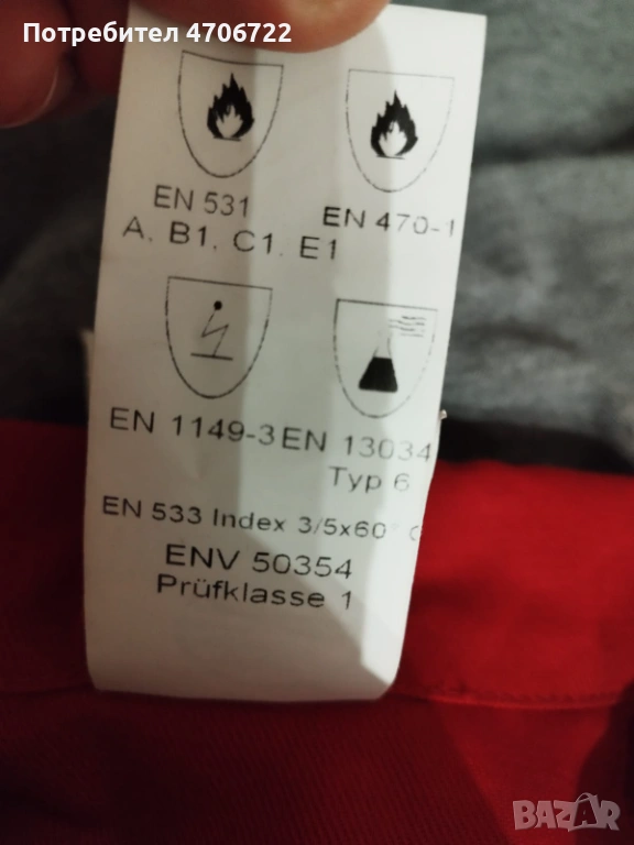 EN 531 – защита от топлина и пламък