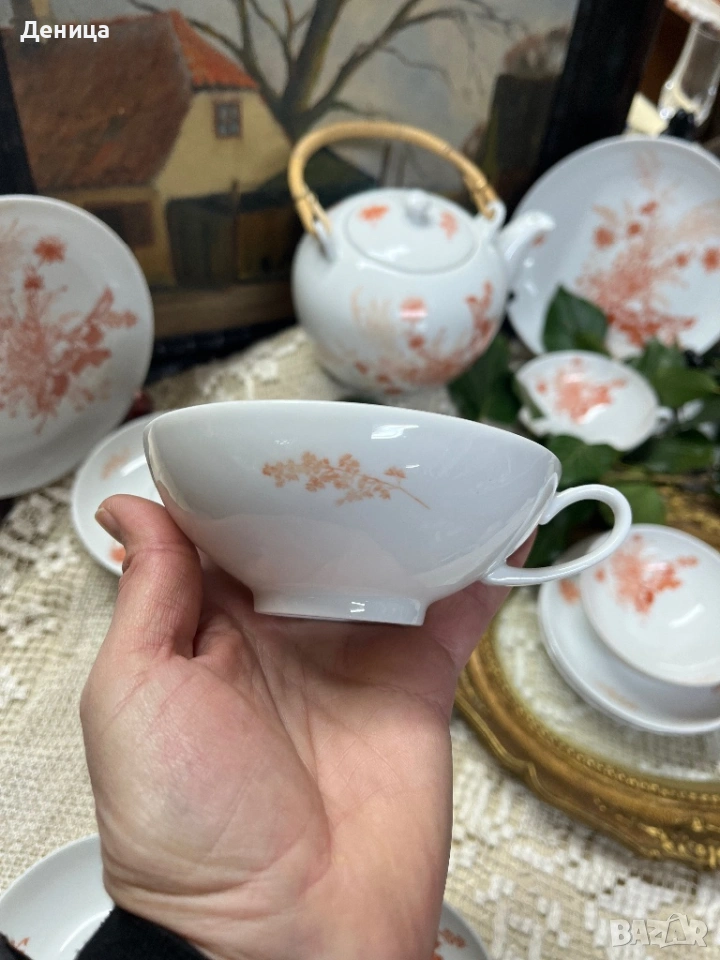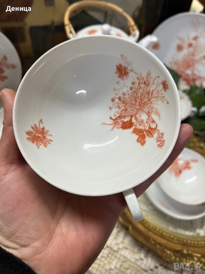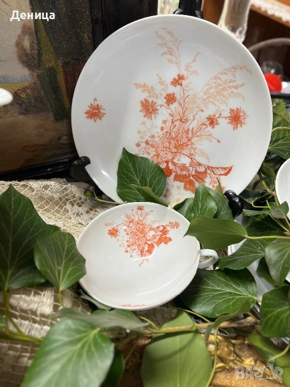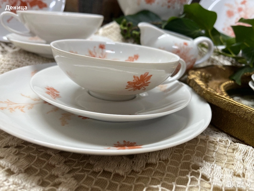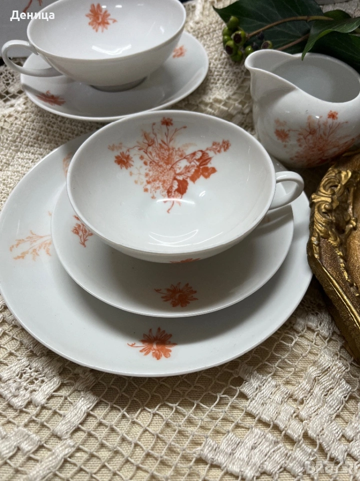 Seltmann Vohenstrauß 1965 Комплект за чай🧡 Бял порцелан и оранжеви цветни клонки. → Обява 53104264