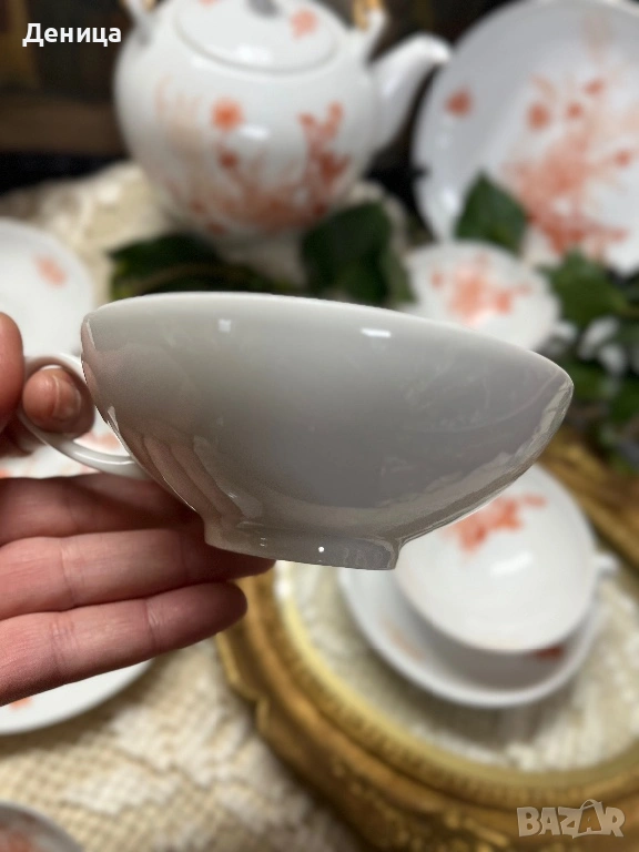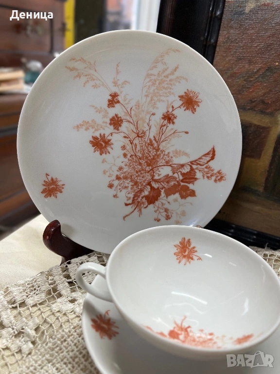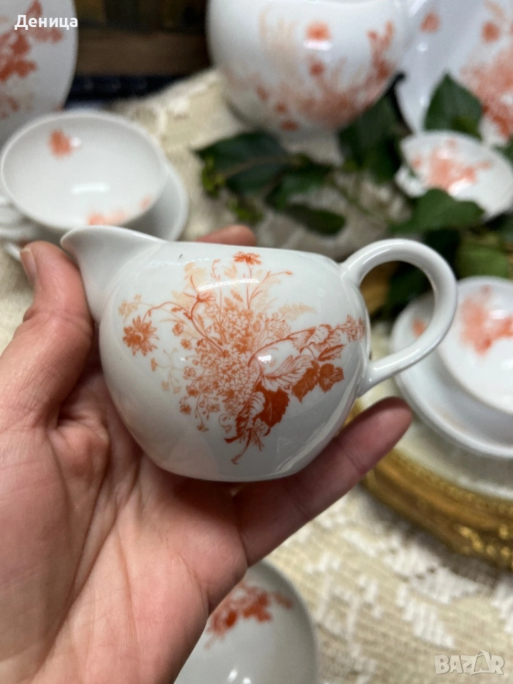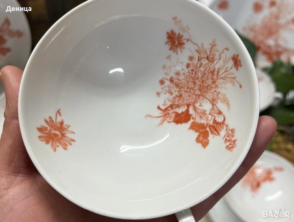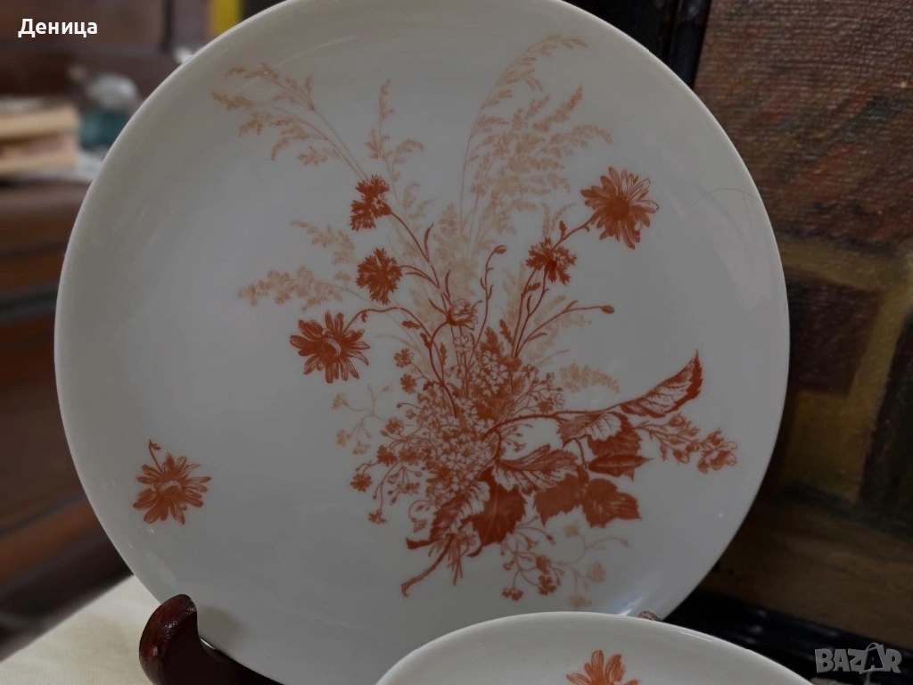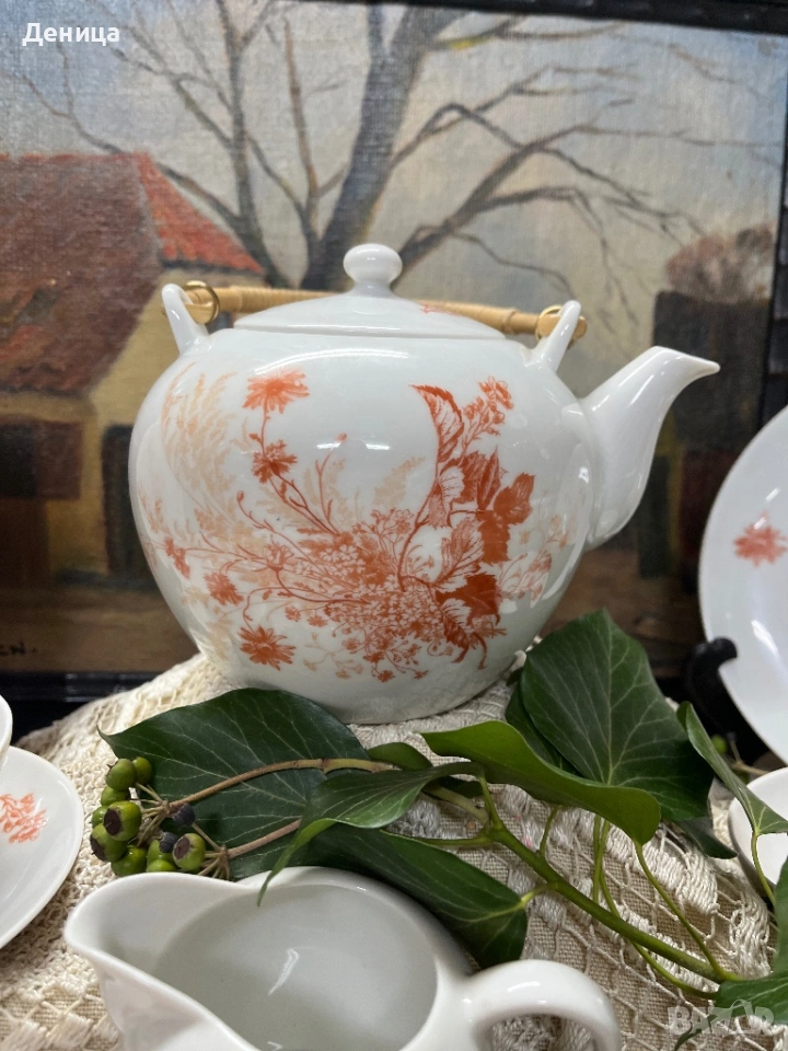 Seltmann Vohenstrauß 1965 Комплект за чай🧡 Бял порцелан и оранжеви цветни клонки. → Обява 53104264