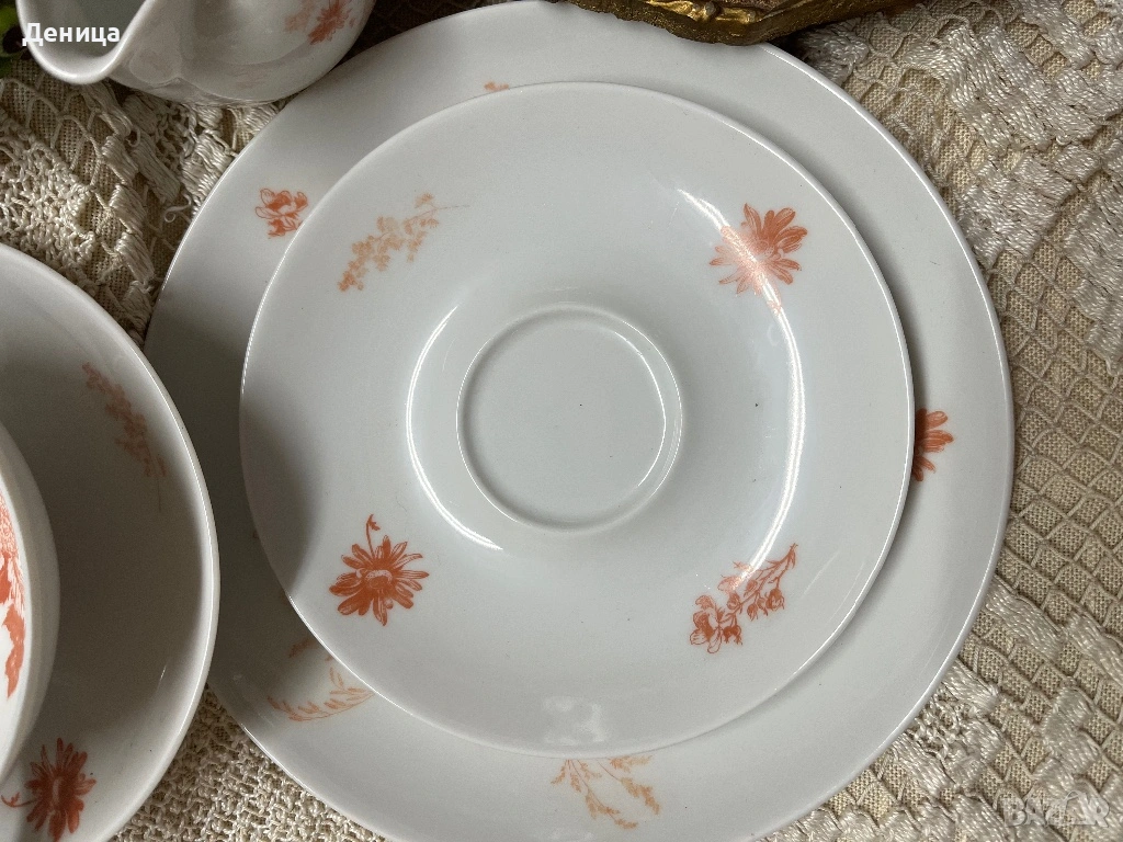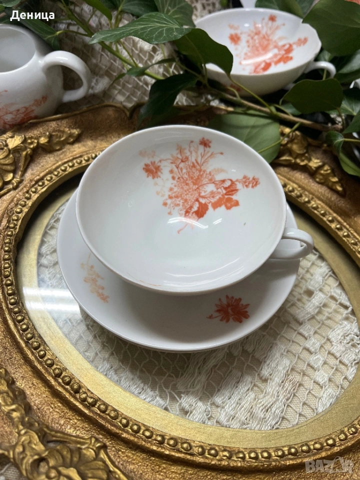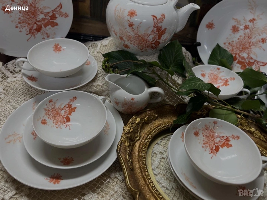 Seltmann Vohenstrauß 1965 Комплект за чай🧡 Бял порцелан и оранжеви цветни клонки.