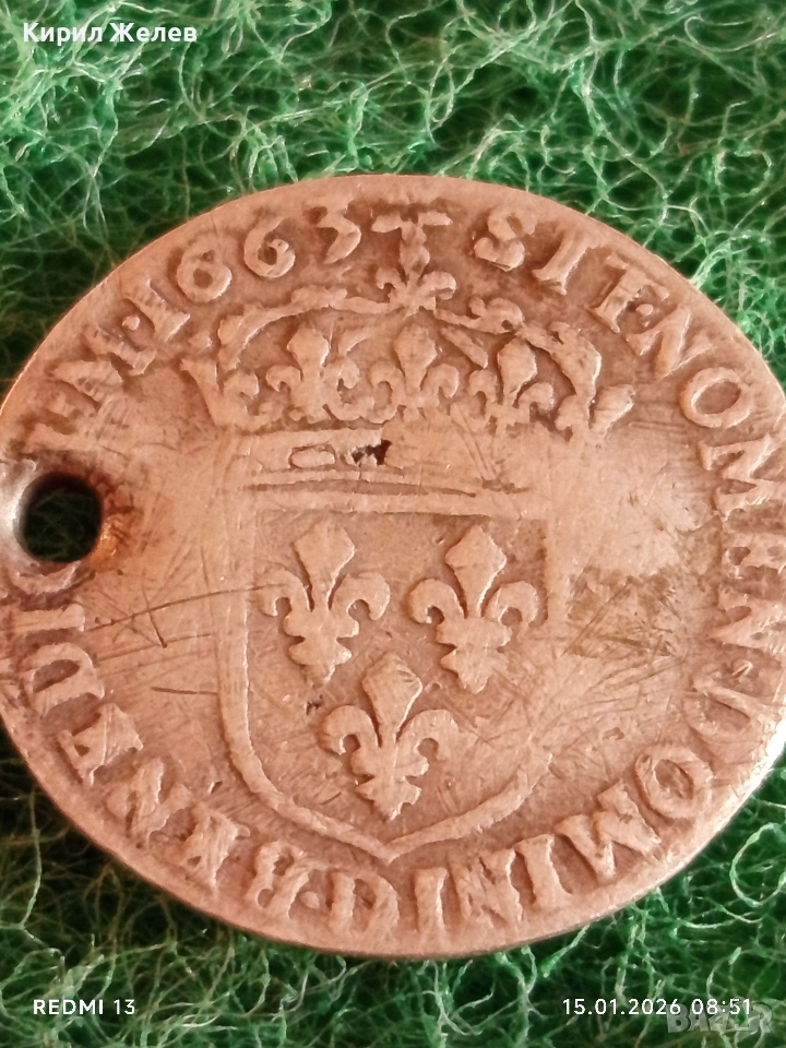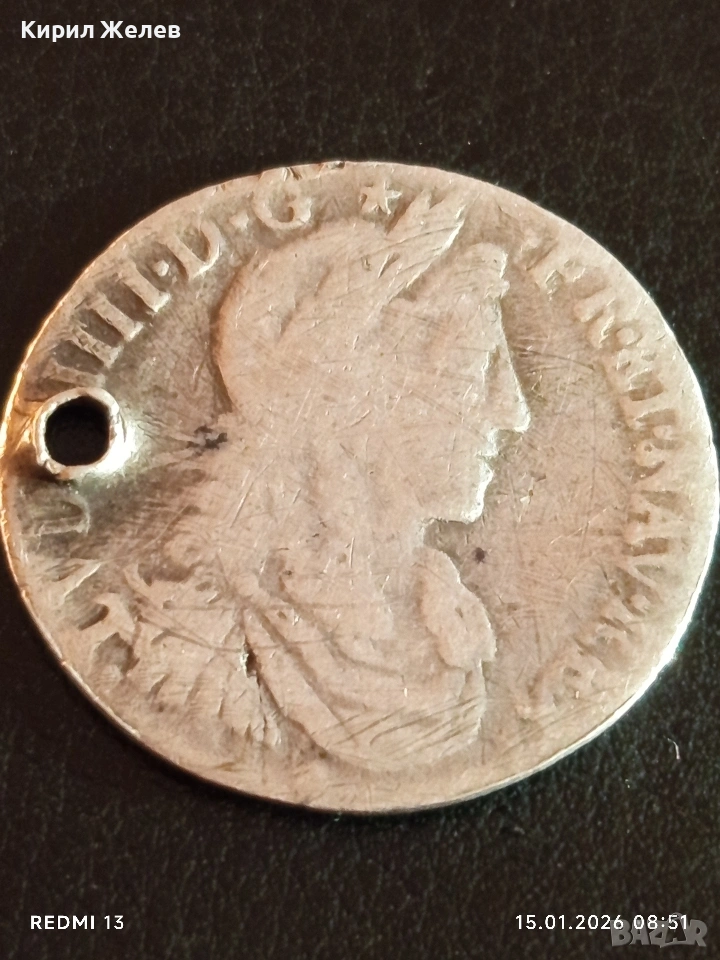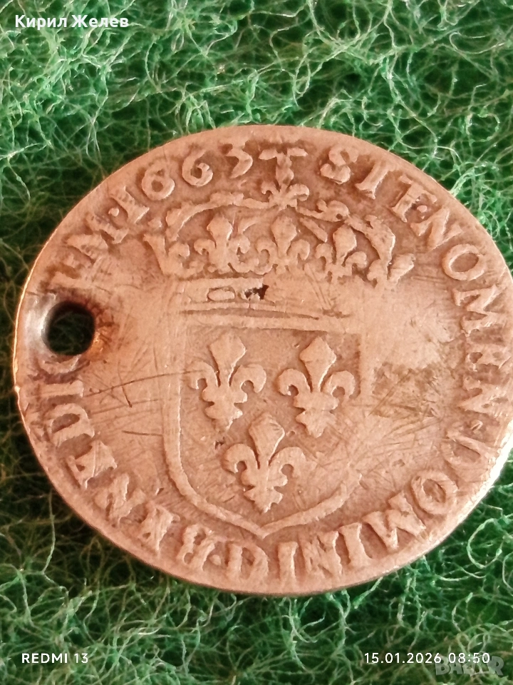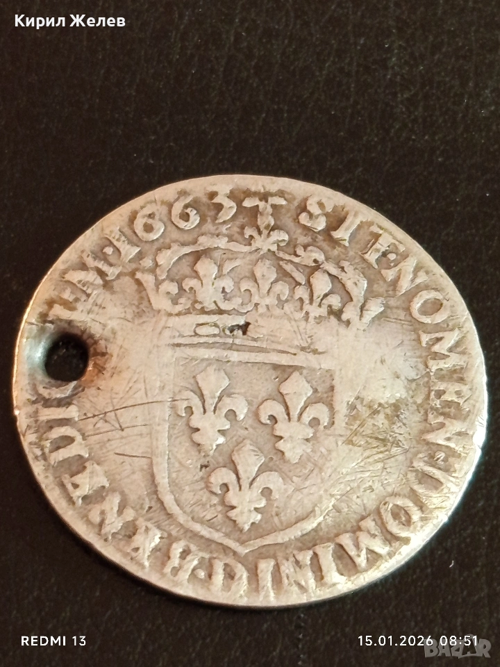 Сребърна монета 1/12 екю 1663г. Луй XIV Франция за КОЛЕКЦИЯ 52974 → Обява 53104542