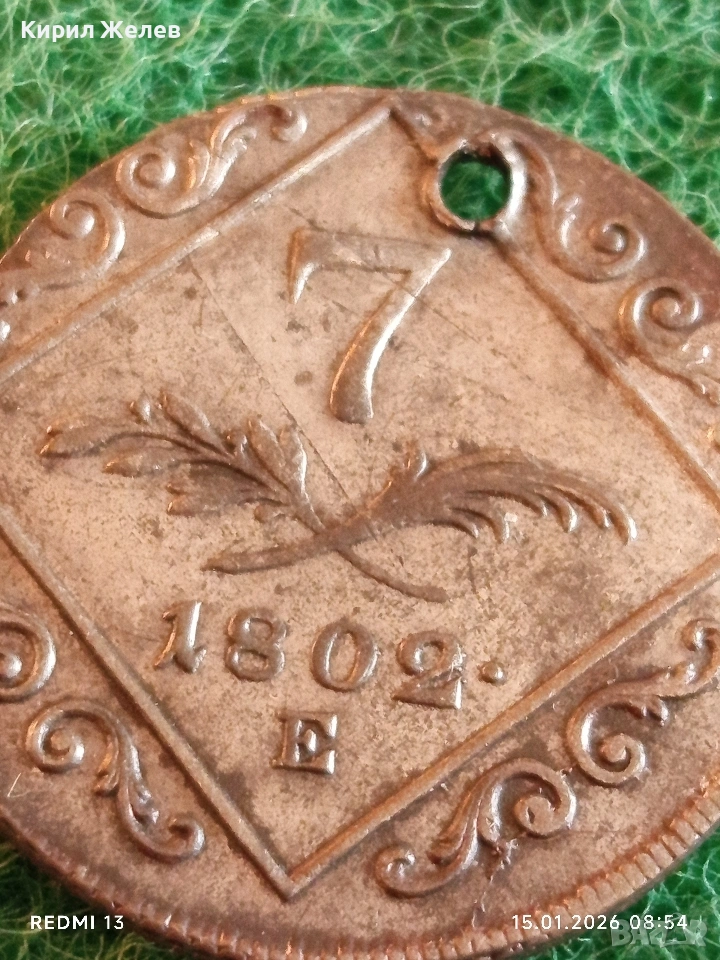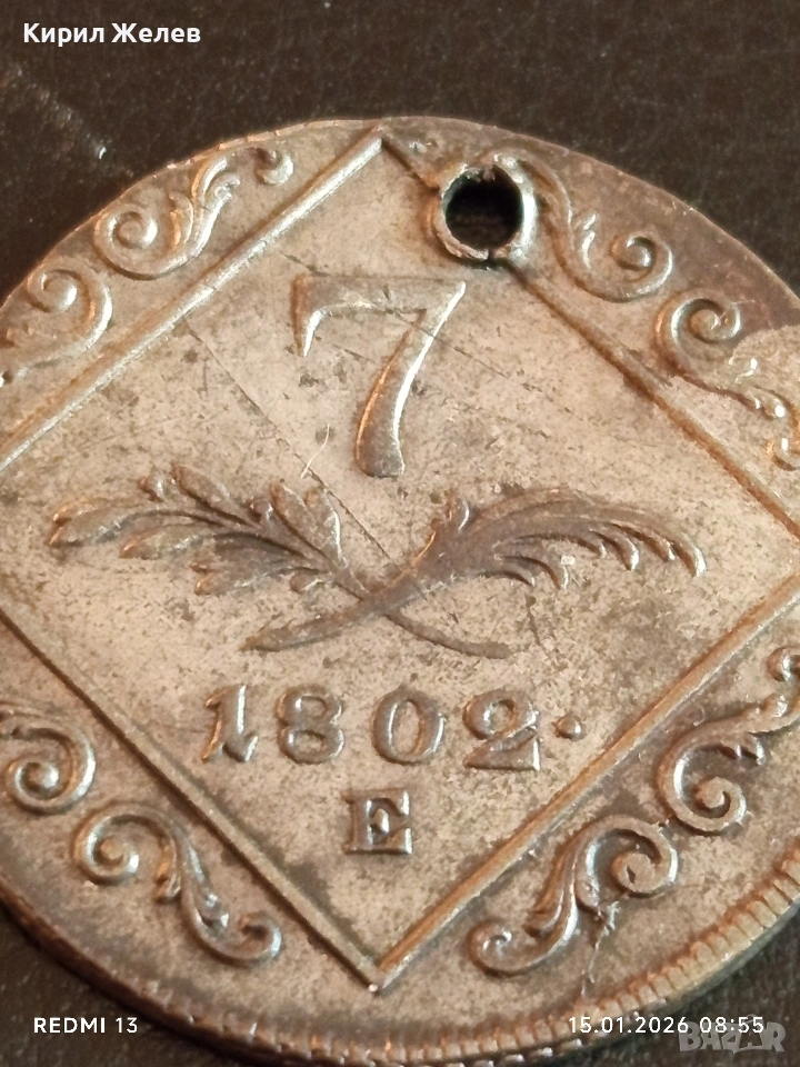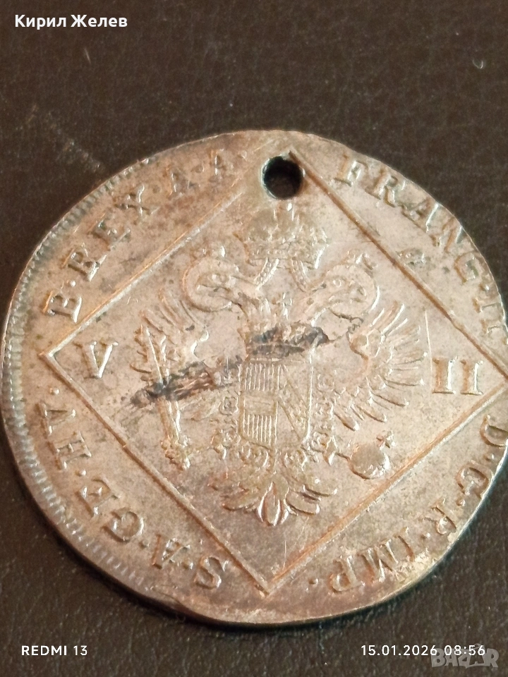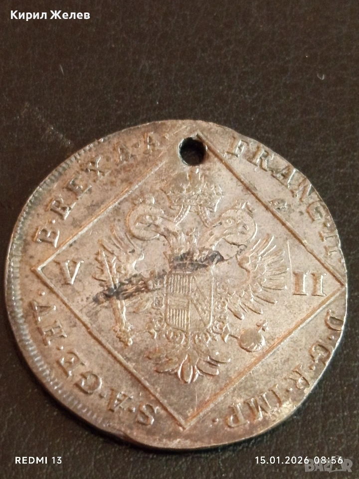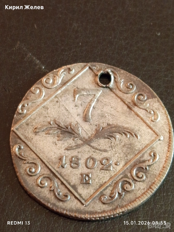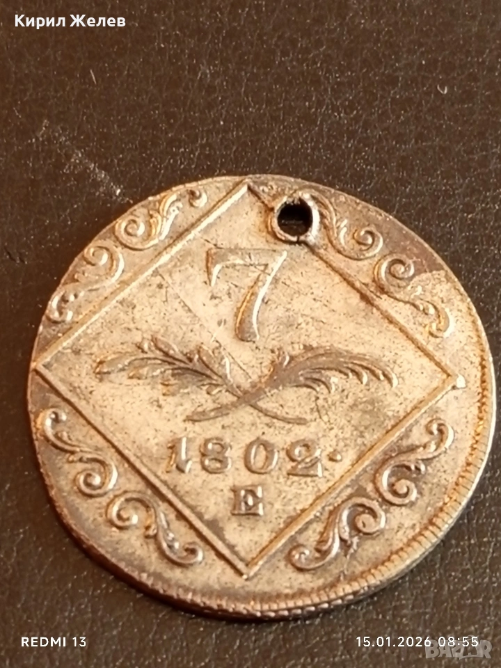 Сребърна монета 7 кройцера 1802г. Франц втори Австрия за КОЛЕКЦИЯ 52980 → Обява 53104566