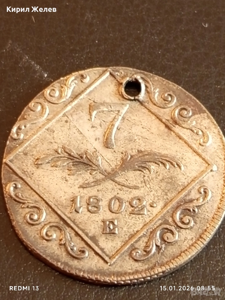 Сребърна монета 7 кройцера 1802г. Франц втори Австрия за КОЛЕКЦИЯ 52980