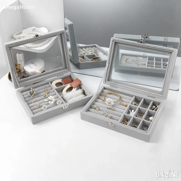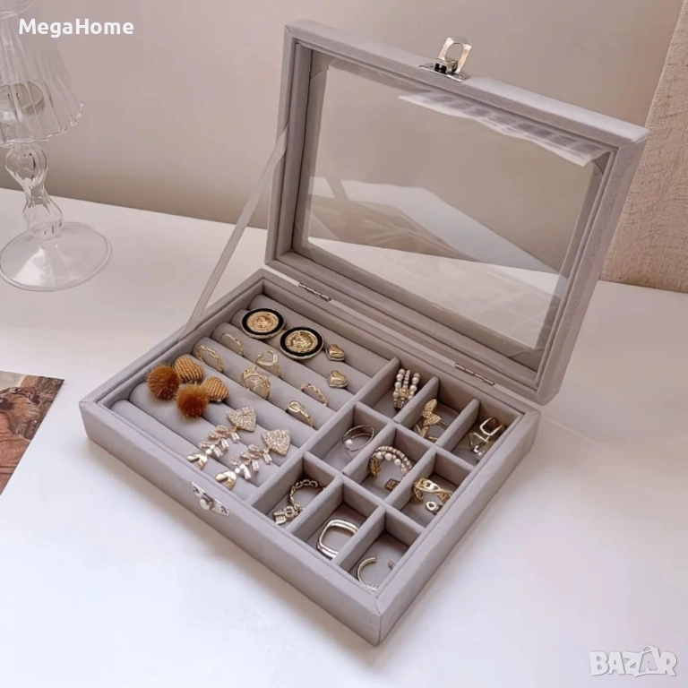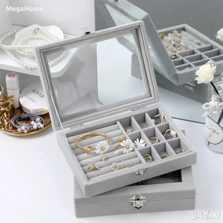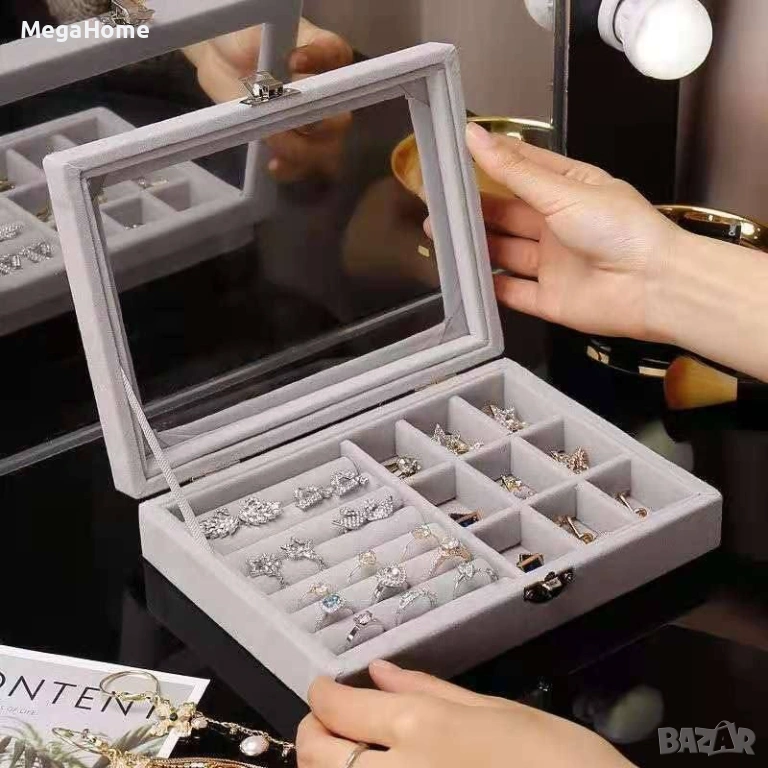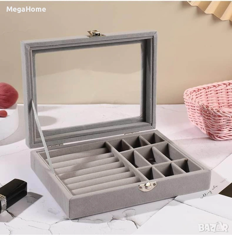 Тази кадифена кутия за бижута може да съхранява обеци, колиета, копчета за ръкавели, пръстени, брошки, игли и др. Регулируемото отделение може да съхранява бижута с различни размери. Пасва идеално в чекмеджето и не заема място. Размери: 20 см (Д) * 15 см (Ш) * 5 см (В)