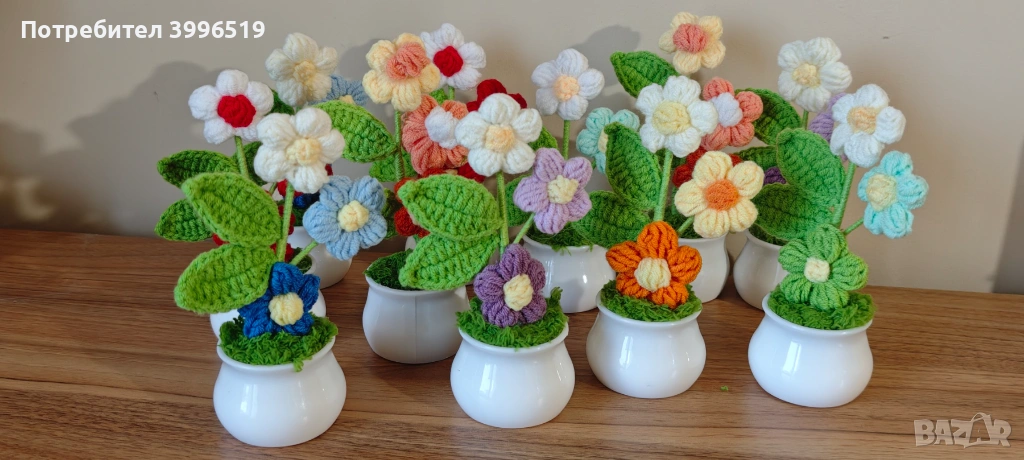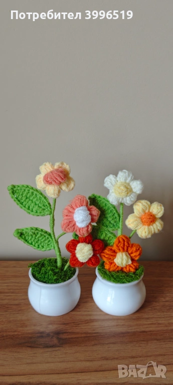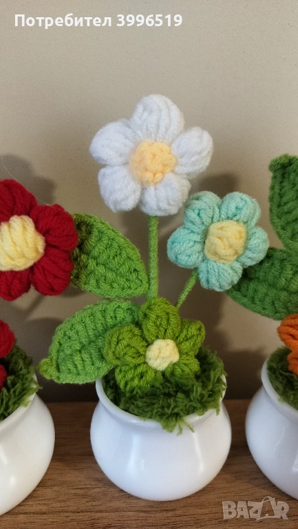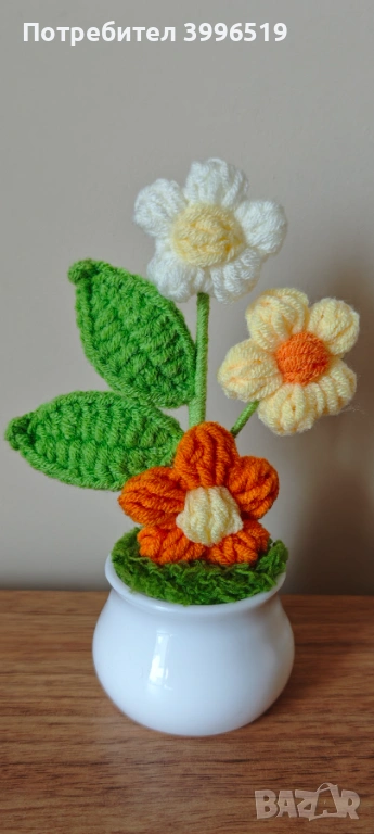 Ръчно плетени цветя в малка саксийка → Обява 53105171