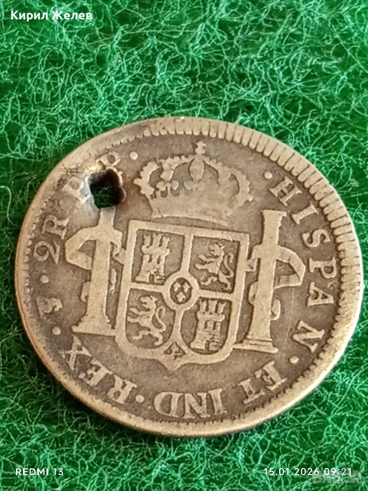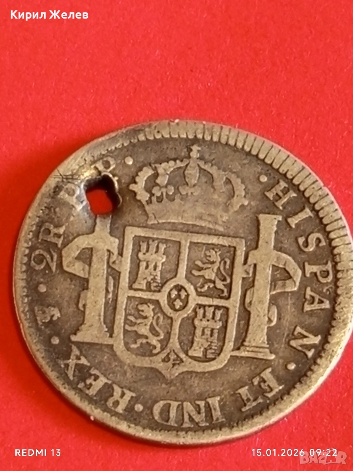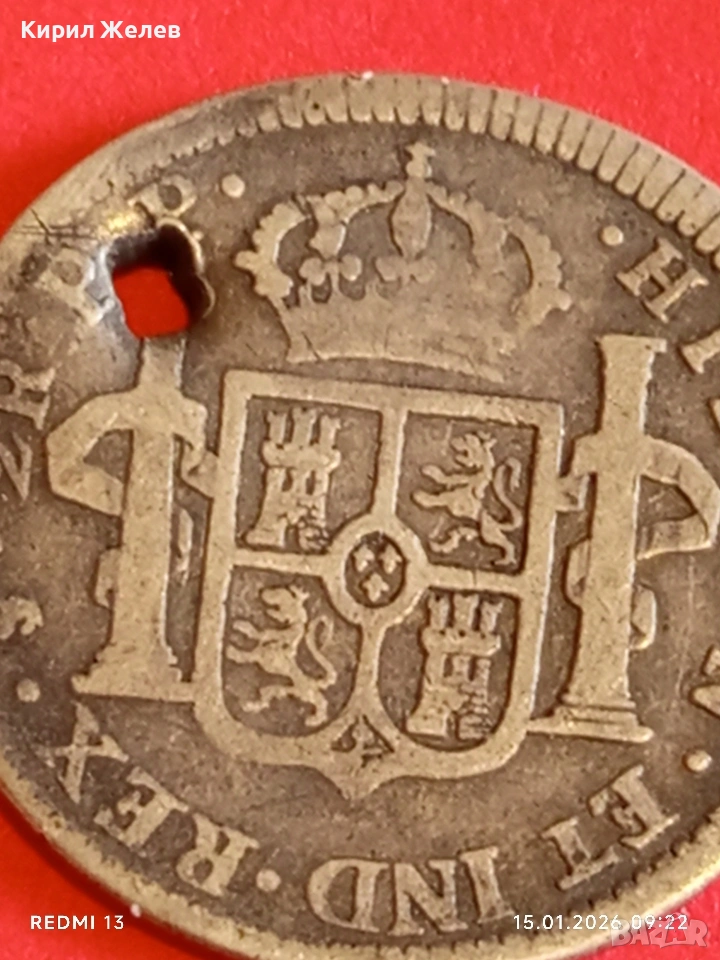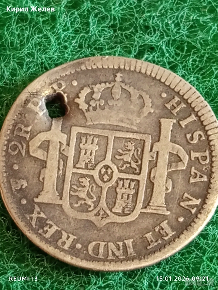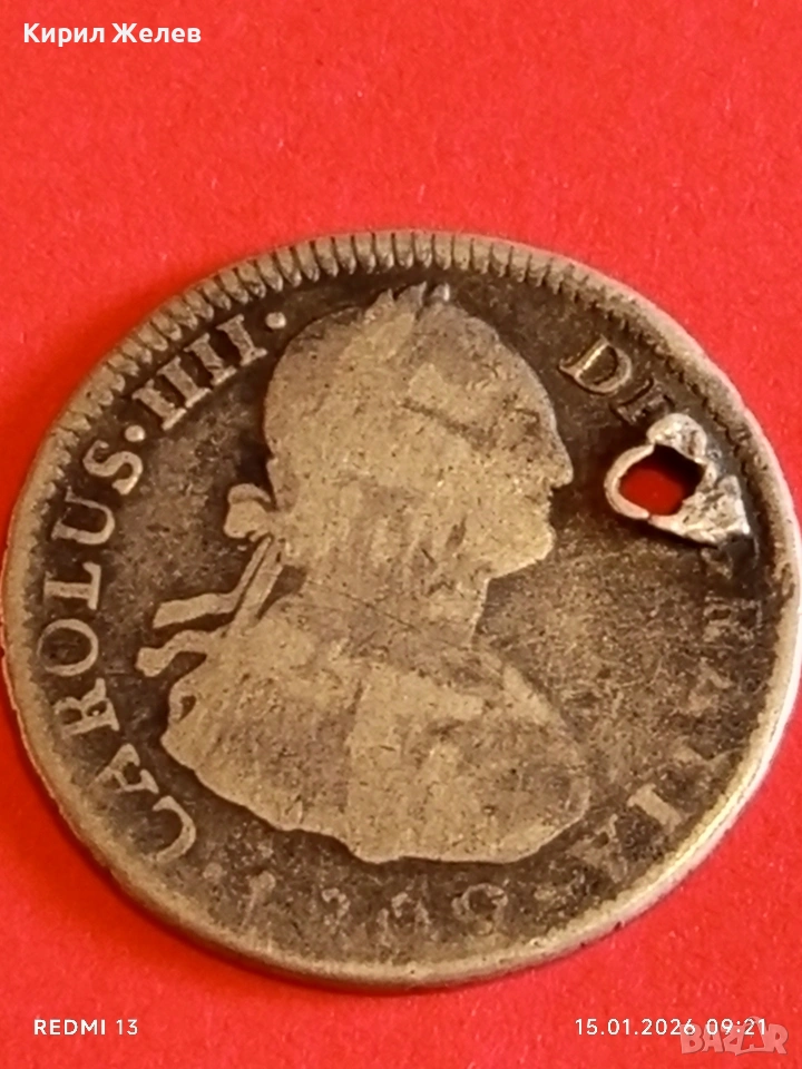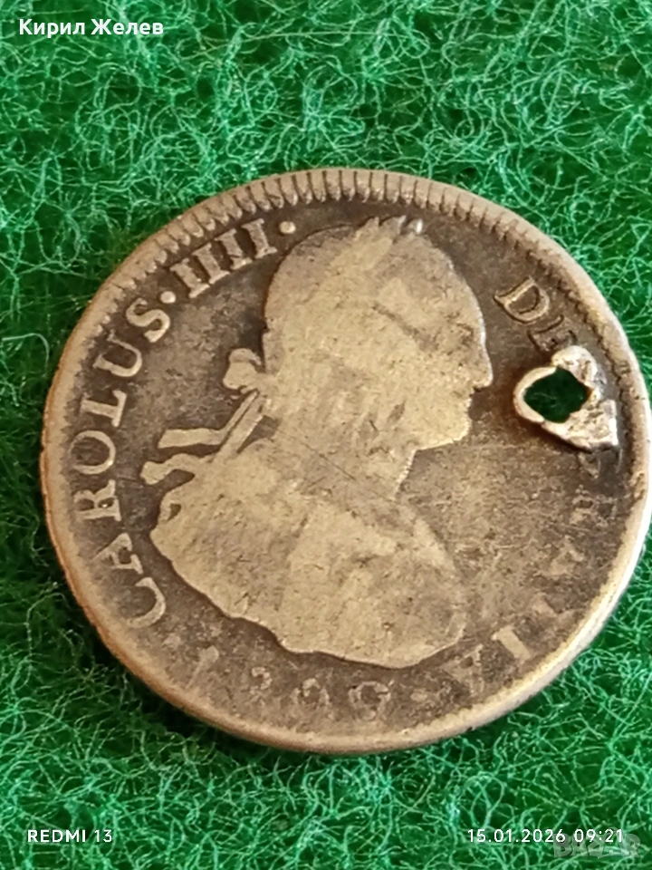 Сребърна монета 2 реала 1800г. Карлос четвърти Потоси Боливия за КОЛЕКЦИЯ 52953 → Обява 53105214