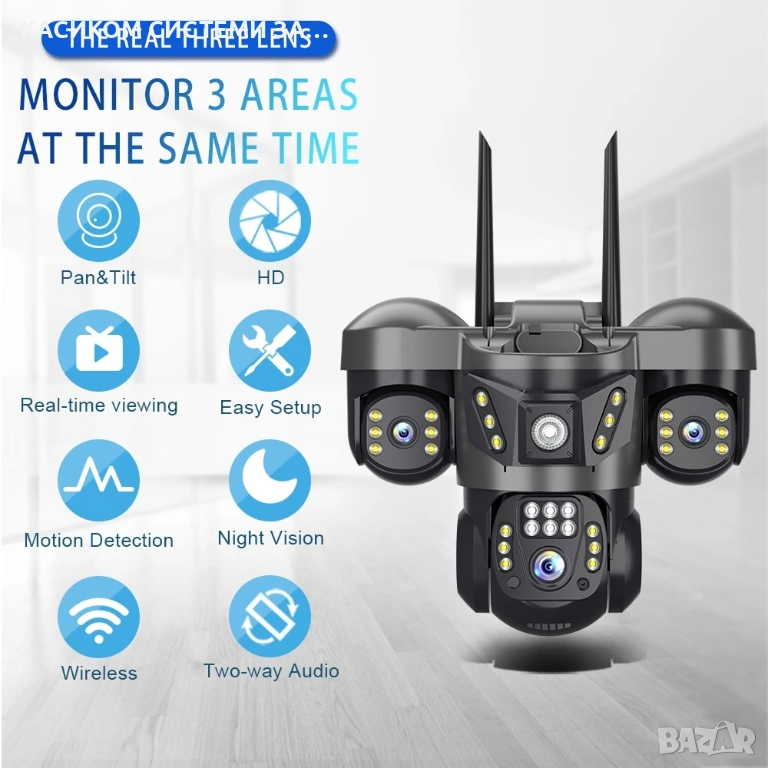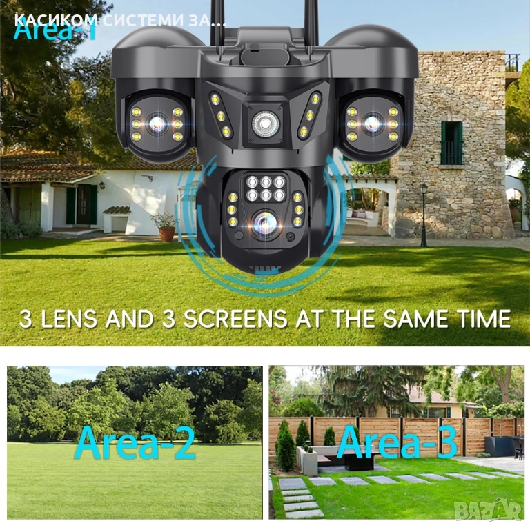 * Панорамно движение (PTZ): до 355° хоризонтално и до 90° вертикално.