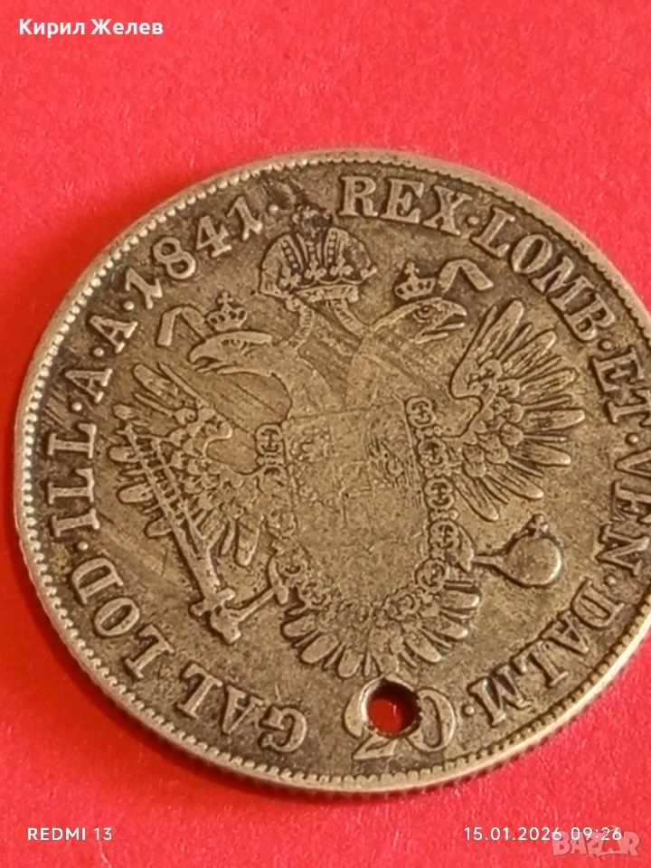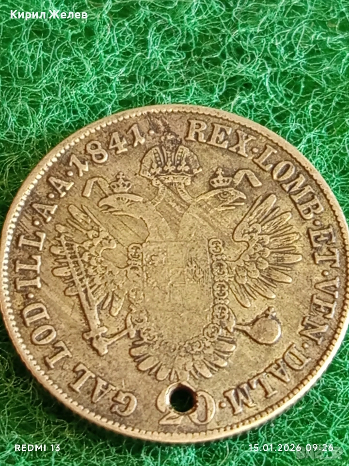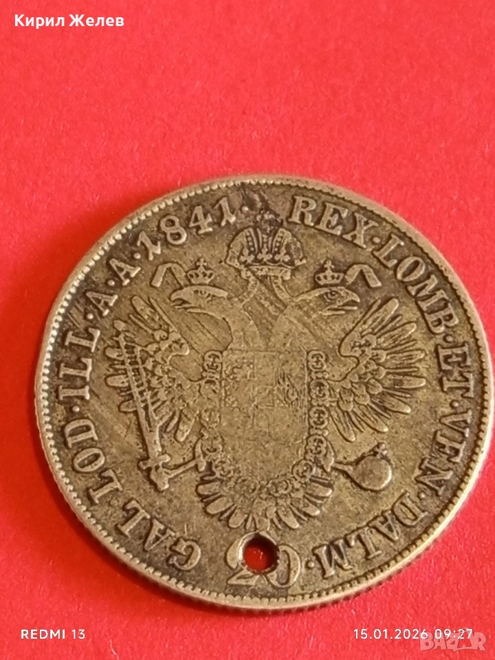 Сребърна монета 20 кройцера 1841г. Фердинанд първи Австрия за КОЛЕКЦИЯ 52994 → Обява 53105254