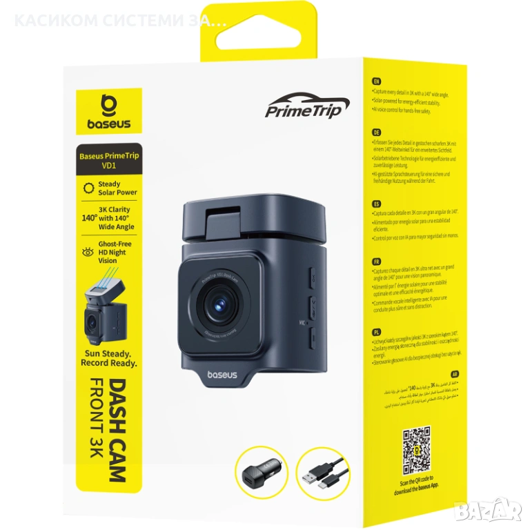 Baseus PrimeTrip Series Dashcam е висококачествен автомобилен видеорегистратор, който улавя ясни и подробни кадри от пътя.