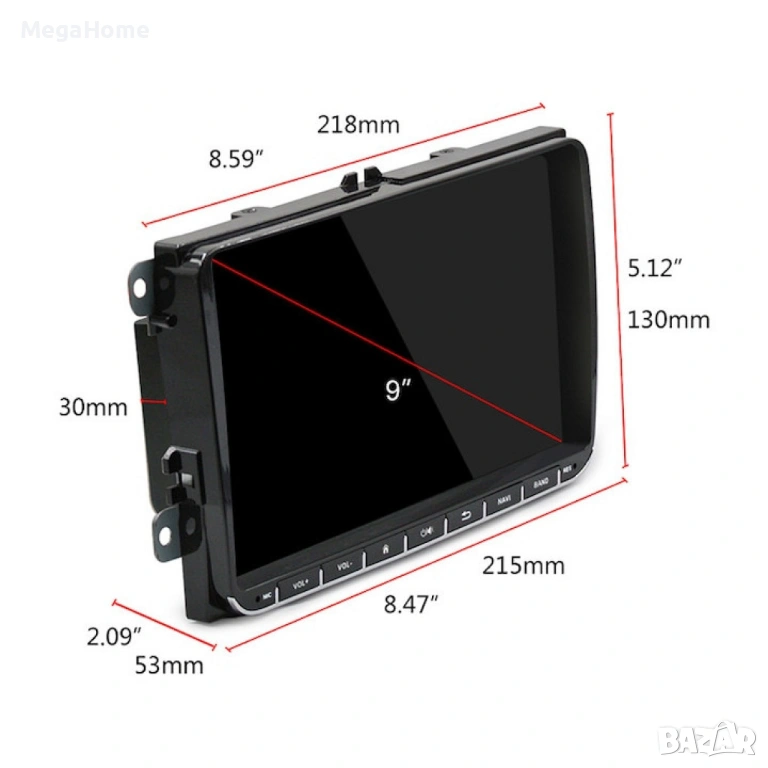 Мултимедия Навигация 9 инча Android 15 за Volkswagen 4GB RAM, 64GB ROM