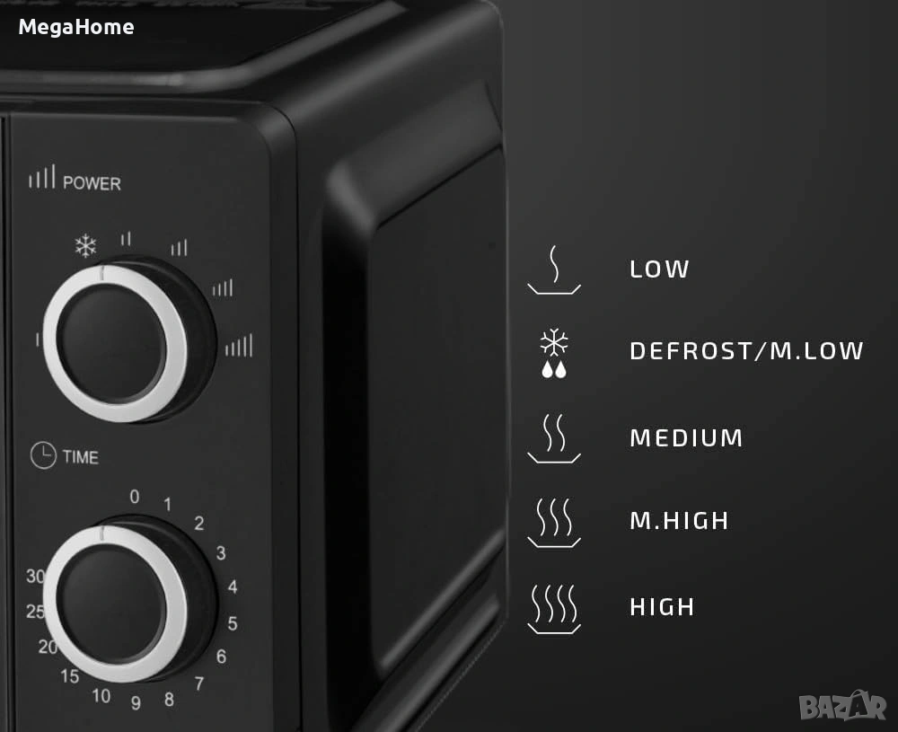 - Нива на мощност: 6 (Low, Defrost, Medium, Med-High, High);