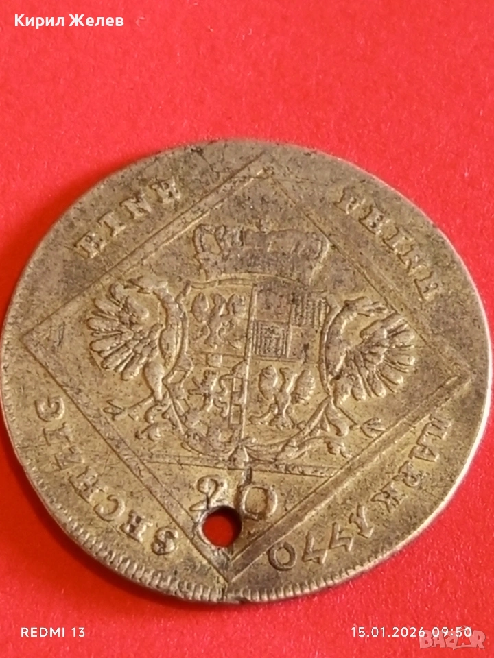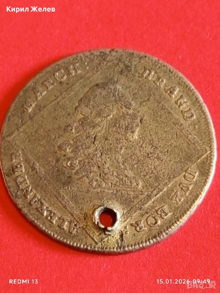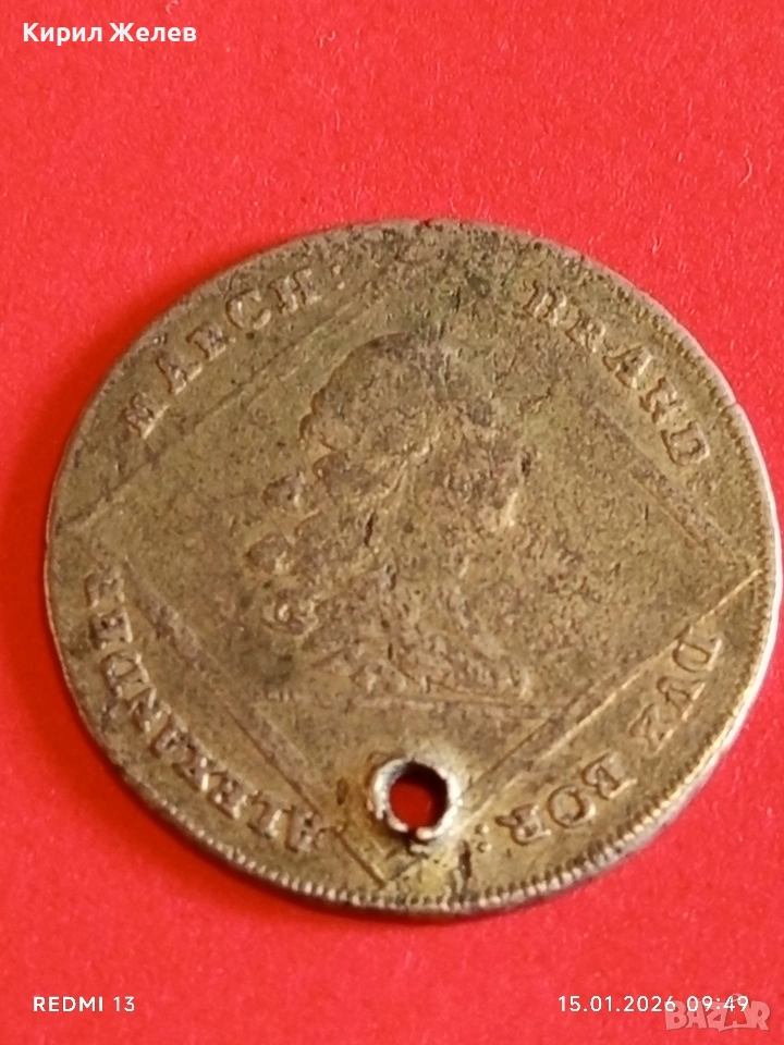 Сребърна монета 20 кройцера 1770г. Александър Бранденбург 52987
